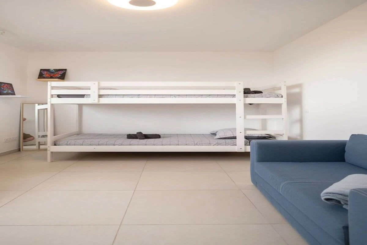 Im Inneren erwartet Sie ein heller Wohnbereich mit Zugang zum Balkon mit Meerblick und Gartenmöbeln. Die offene Küche ist komplett ausgestattet mit Kühlschrank, Gefrierschrank, Backofen, Mikrowelle, Geschirrspüler, Kaffeemaschine, Toaster und allen wichtigen Utensilien. Das Apartment verfügt über zwei komfortable Schlafzimmer: eines mit einem 160 cm breiten Doppelbett und eines mit einem Etagenbett (2 x 90 cm). Ein modernes Badezimmer mit ebenerdiger Dusche, Waschmaschine und Trockner sowie ein separates WC sorgen für zusätzlichen Komfort. Highspeed-WLAN, ein Smart-TV und Zentralheizung runden die Ausstattung ab.