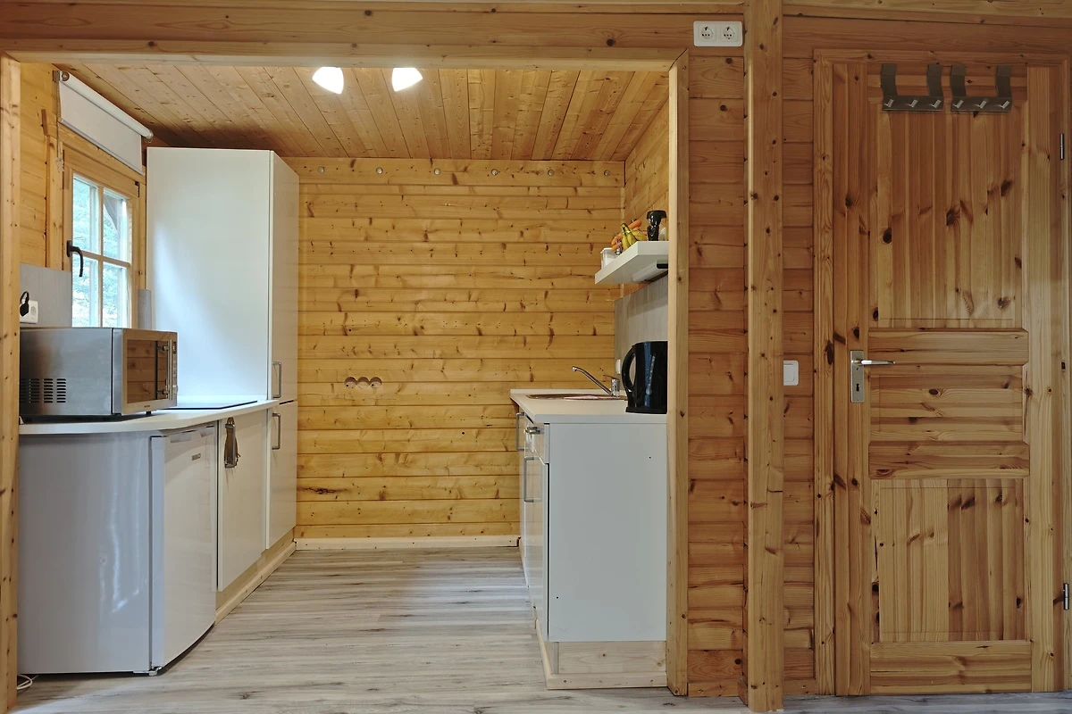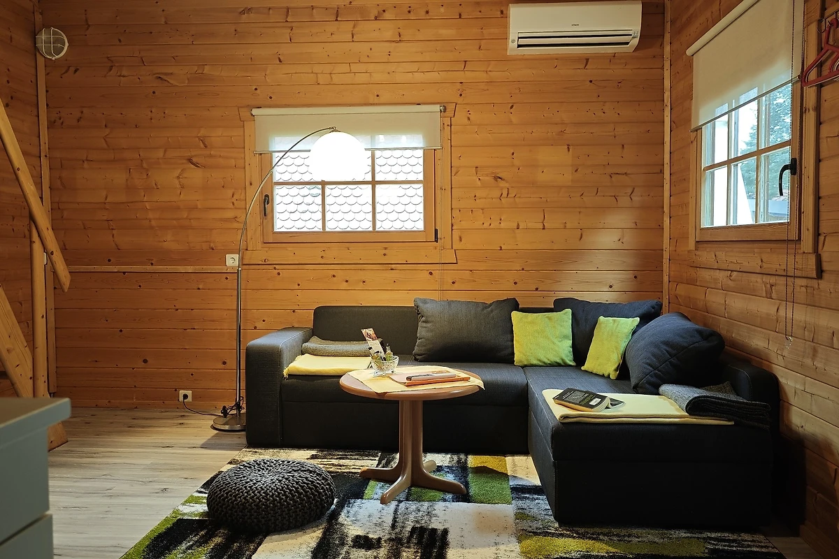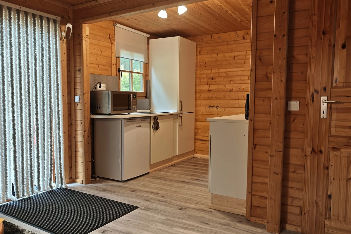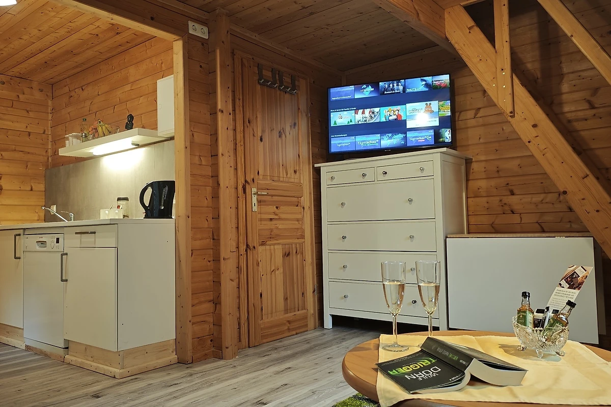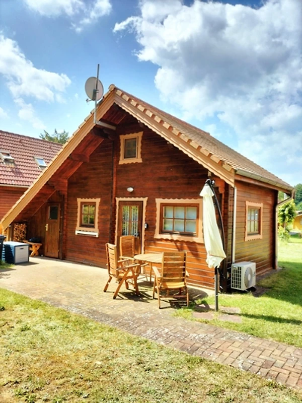 Das Ferienhaus Klein-Eden befindet sich in einer ruhigen kleinen Ferienhausanlage mit Blick zum Wald. Eine Liegewiese, ein Kräutergarten und Platz zum Spielen für die Kinder runden das Ganze ab. Bei Mehrgenerationsurlaub oder Urlaub mit Freunden kann auch gerne das daneben liegende Ferienhaus Eden mit gebucht werden. Bitte beachten Sie die Raumspartreppe im Haus. Fahrräder können genutzt werden.