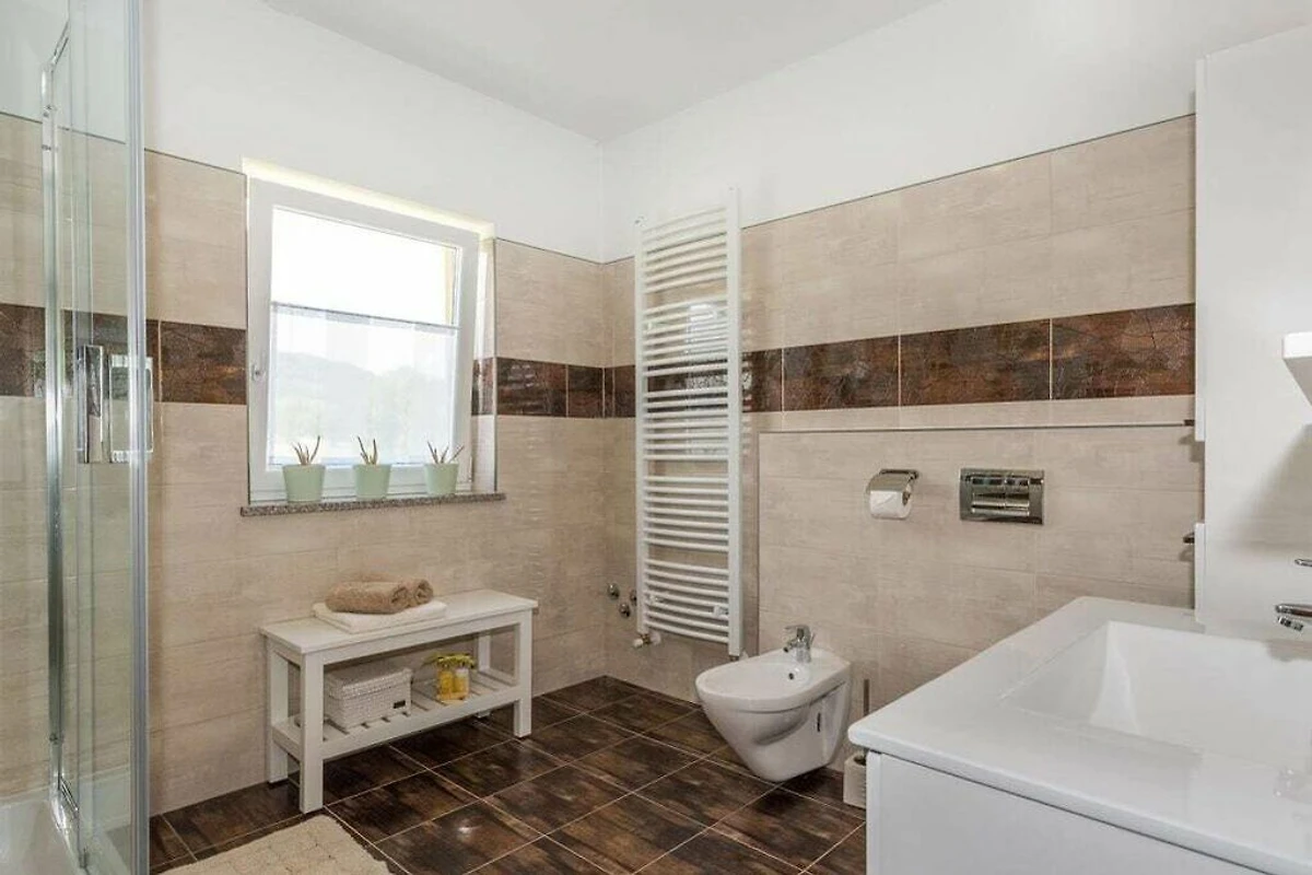 In der 1. Etage: (Schlafzimmer(Doppelbett), Schlafzimmer(Doppelbett), Schlafzimmer(Doppelbett), Badezimmer(Dusche, Waschbecken, Toilette, Bidet, Handtücher inklusive), Badezimmer(Dusche, Waschbecken, Toilette, Handtücher inklusive))