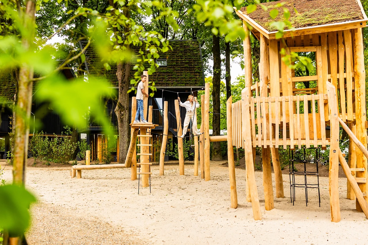 Die gemütlichen Waldvillen sind für bis zu acht Personen geeignet und verfügen über vier Schlafzimmer mit eigenem Bad, einschliesslich einer Toilette, und eine separate Toilette. Die Zimmer sind auf zwei Etagen verteilt.Im Erdgeschoss befindet sich das geräumige Wohnzimmer mit einem Fernseher und einem elektrischen Kamin. Die offene Küche verfügt über hochwertige Einbaugeräte wie einen Quooker, einen Geschirrspüler und eine Kühl-Gefrier-Kombination. Im Erdgeschoss befindet sich ausserdem ein Schlafzimmer mit eigenem Bad. Die anderen drei Schlafzimmer, jeweils mit eigenem Bad, befinden sich in der zweiten Etage.Der Aussenbereich der Waldvillen ist eine wahre Wonne. Durch die Glastüren im Wohnzimmer können Sie direkt auf die überdachte Veranda mit Terrasse hinaustreten. Ausserdem können Sie in der Aussenküche die leckersten Gerichte zubereiten. Der landschaftlich gestaltete Garten vervollständigt das Leben im Freien.Die Waldvilla nutzt kein Gas und verfügt über wassersparende Duschköpfe und LED-Beleuchtung. Ausserdem hat die Unterkunft ein begrüntes Dach, das der Biodiversität zugutekommt. Dank der eingebauten Klimaanlage und Fussbodenheizung müssen Sie auf keinen Komfort verzichten. So können Sie zu jeder Jahreszeit einen komfortablen Aufenthalt geniessen.