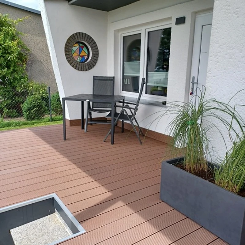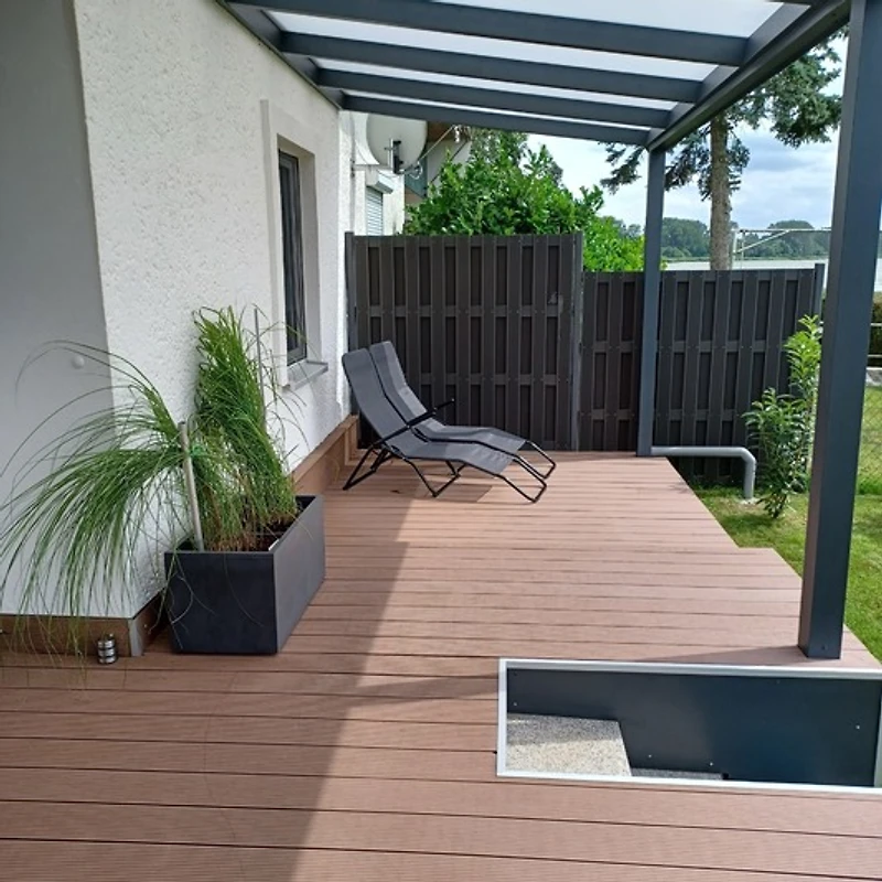 Auf der Terrasse können Sie in bequemen Stühlen an einemTisch verweilen und den wundervollen Blick auf den See geniessen, aber auch wunderschöne Sonnenuntergänge bei einem Glas Wein bewundern. Zum relaxen und Seele baumeln lassen haben Sie hier Ihre eigenen Relax-Liegen.