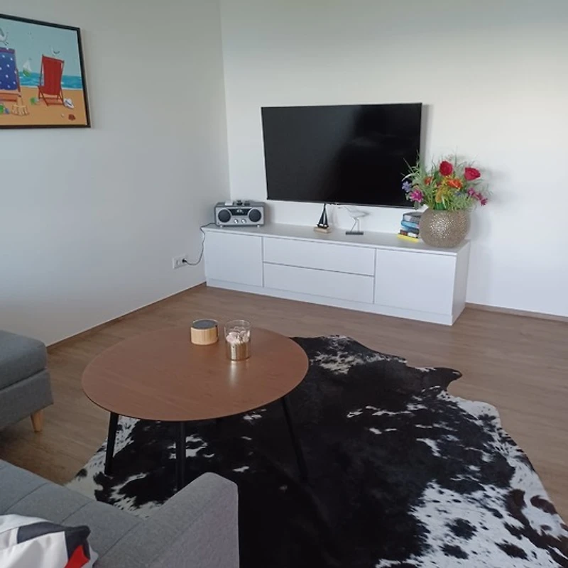 Beim betreten des neuen und hochwertigen Bungalows erwartet Sie ein gemütliches Wohnzimmer, u.a ausgestattet mit einer gemütlichen Eck-Couch, Couchtisch und Esstisch mit Platz für 2 Personen und einem Smart-TV neuester Generation. Über eine hochwertige Musikanlage können Sie nicht nur digitales Radio, sondern auch Ihre persönliche Lieblingsmusik in einem perfekten Sound geniessen. Koppeln Ihres Gerätes über Aux oder Bluetooth, und los geht's.