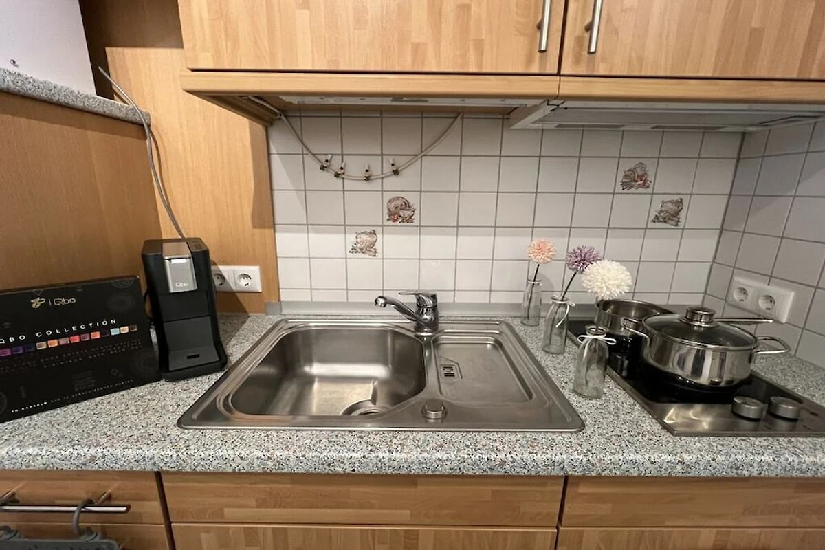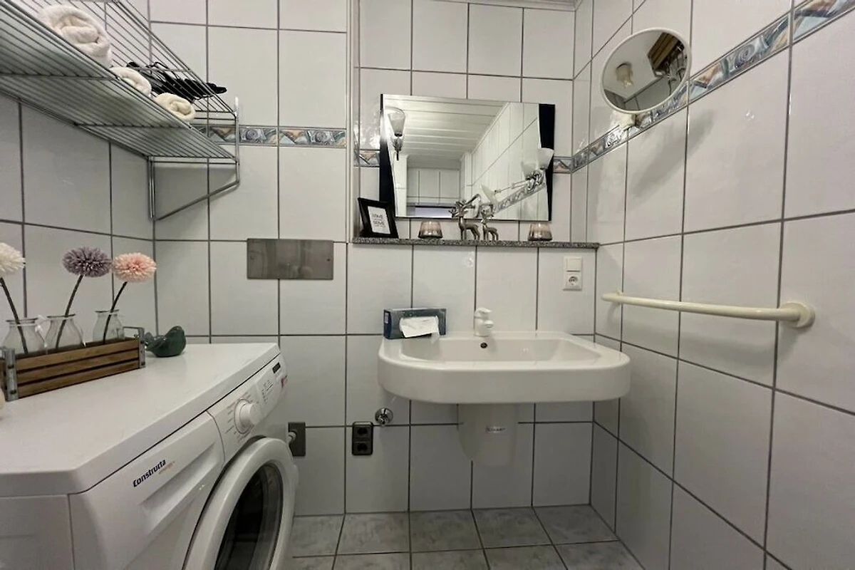 , , , Eingangshalle(, , Kochnische), offene Küche(, , Kochnische, Kochplatte, Wasserkocher, Toaster, Kaffeemaschine, Kühlschrank), Schlafzimmer(Doppelbett, TV), Badezimmer(, Dusche, Waschbecken, Waschmaschine, Föhn), guest toilet(Toilette, Waschbecken), Ruheraum(, Sauna, Pool), Internet, Erste-Hilfe-Station, Waschmaschine, Balkon(, Balkon, Liegen), Heizung, Parkplatz, Bügelbrett, Bügeleisen, Gartenlounge(Tischtennis), Trockenschrank
