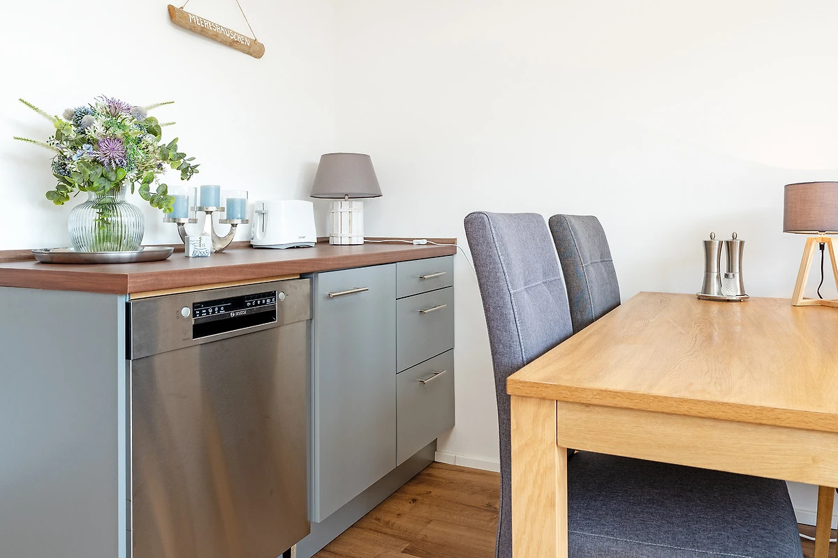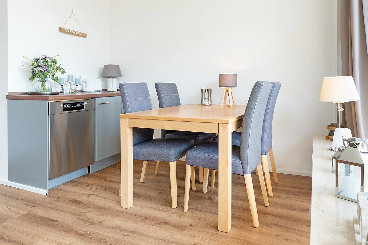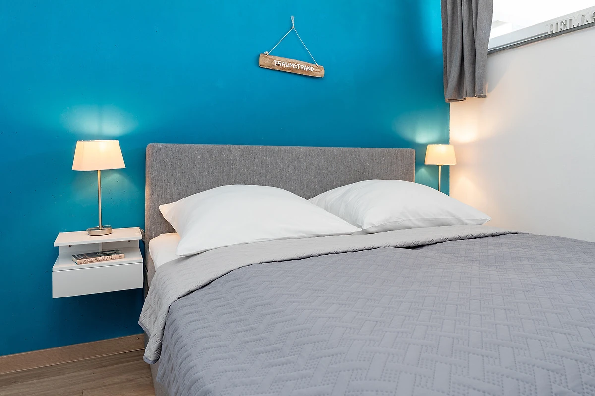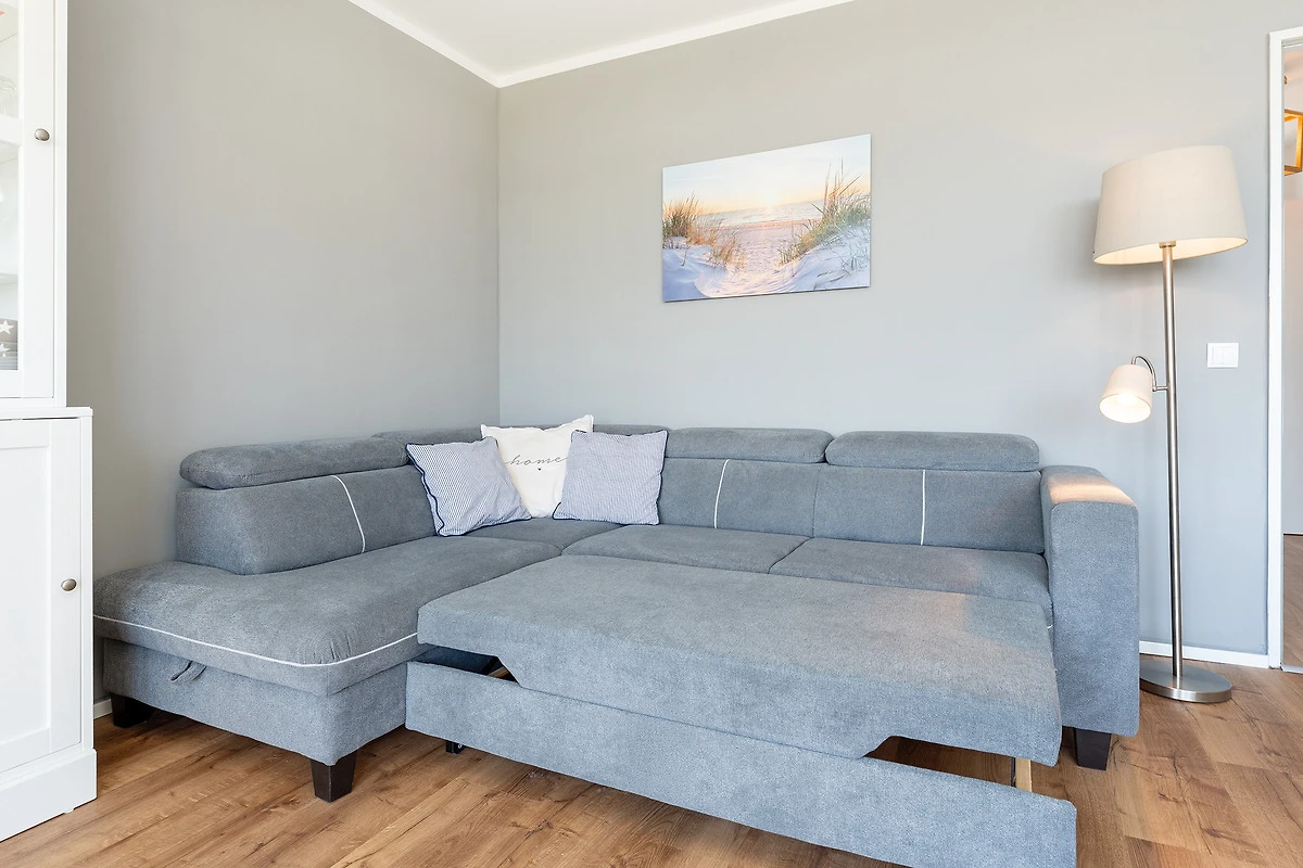 Diese charmante Wohnung liegt in einem strandnahen Appartementhaus und überzeugt durch ihre durchdachte Ausstattung. Im hellen Wohnbereich erwartet Sie ein gemütliches Sofa sowie moderne Unterhaltung über SAT-TV. Der angrenzende Balkon lädt zum Verweilen in der Sonne ein. Die separate Küchenzeile ist mit einem Mikro-Backkombigerät, 2 Cerankochfeldern, Kühlschrank, Geschirrspüler und Kaffeemaschine voll ausgestattet. Das Schlafzimmer bietet ein komfortables Boxspringbett (160x200) für entspannte Stunden. Das moderne Bad ist mit Dusche und WC ausgestattet.