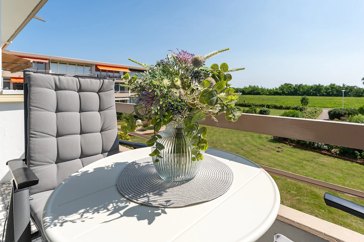 Grosszügige 2-Zimmer-Ferienwohnung in Grömitz mit 46 m² Wohnfläche und Balkon für bis zu 3 Personen.