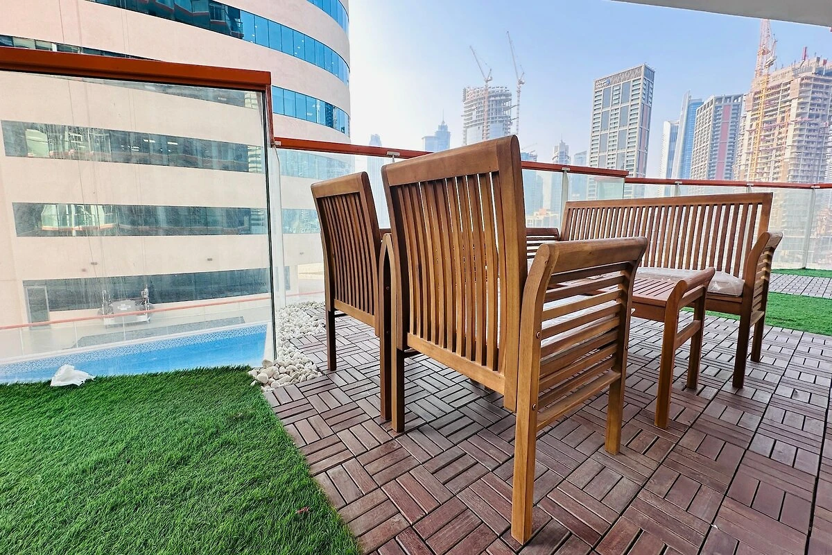 Bewundern Sie die spektakuläre Aussicht auf die Stadt und den Burj Khalifa direkt von Ihrem Apartment aus.