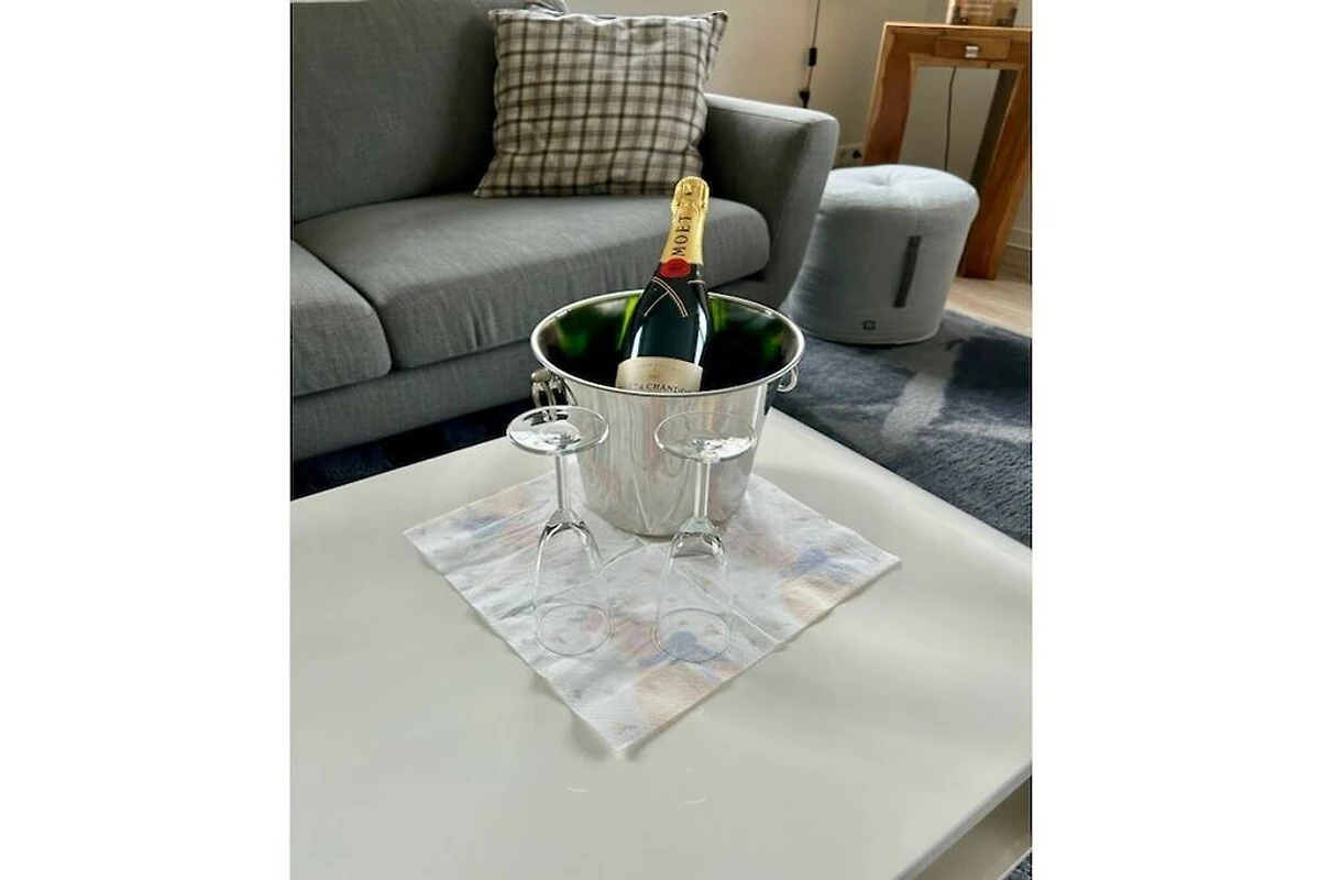 Unsere liebevoll eingerichtete Doppelhaushälfte bietet Platz für bis zu vier Personen mit zwei Schlafzimmern, zwei modernen Bädern, einer Sauna und einem stilvollen Wohnbereich mit hochwertiger Küche. Genießen Sie auf der sonnigen Südwest-Terrasse den Blick ins Grüne.