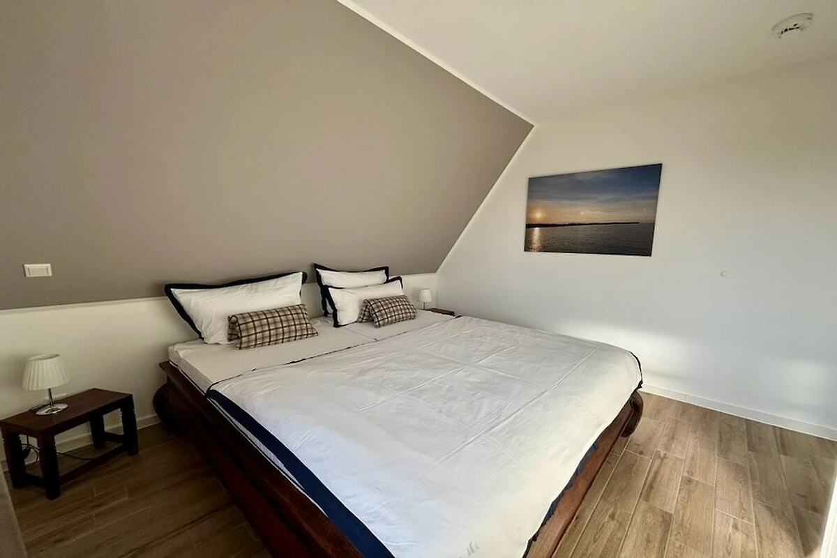 Im Obergeschoss erwarten Sie zwei gemütliche Schlafzimmer mit je einem Doppelbett und viel Stauraum, eine integrierte Sauna sowie eine Waschmaschine. Drei Fahrräder, ein Bollerwagen und Spiele sorgen für zusätzlichen Komfort. W-LAN kostenlos.