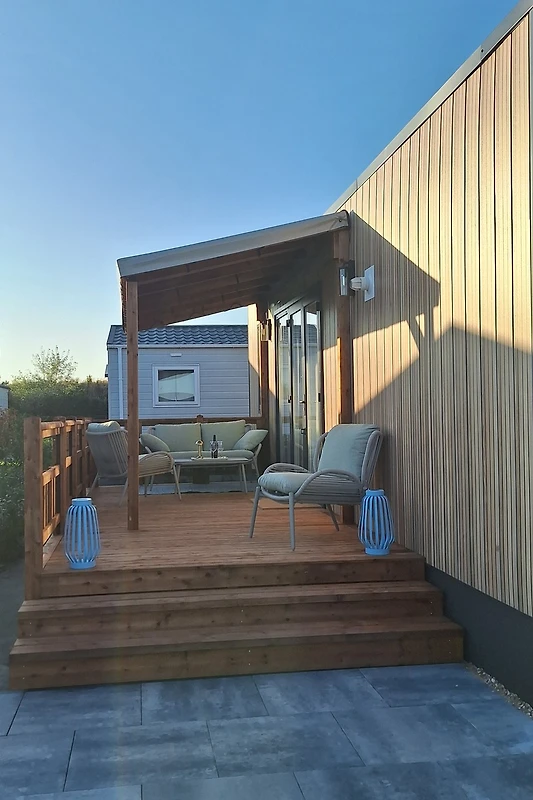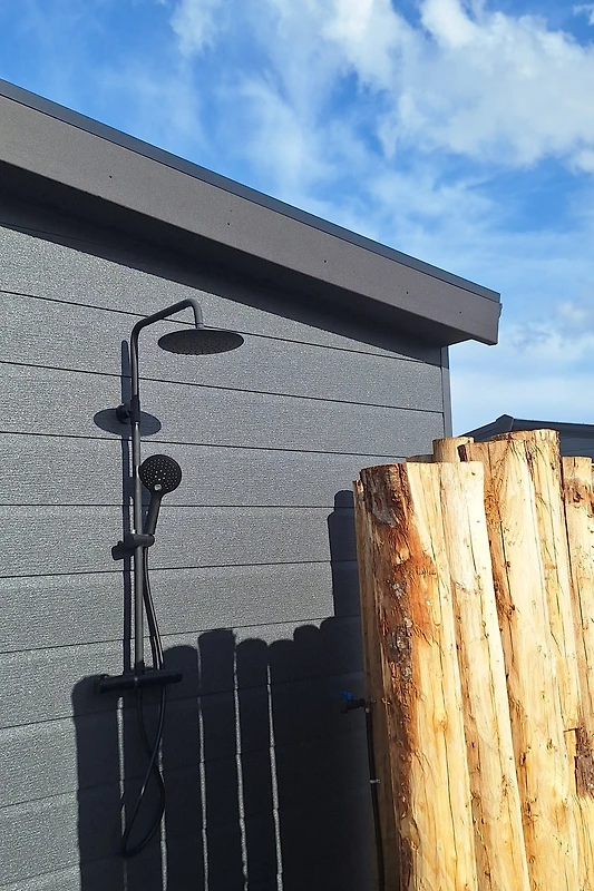 Draußen erwartet Sie ein großer Garten mit typischer zeeländischer Bepflanzung. Hier finden Sie eine Loungeecke, einen Picknicktisch, ein Gartenhaus, einen Sonnenschirm, einen Gasgrill sowie eine erfrischende Außendusche. Der Garten ist so angelegt, dass Sie den ganzen Tag über ein sonniges Plätzchen finden. Die überdachte Veranda mit Lounge-Set und breiter Treppe verbindet Innen und Außen und ist der perfekte Ort für den ersten Kaffee oder einen abendlichen Drink bei Sonnenuntergang.