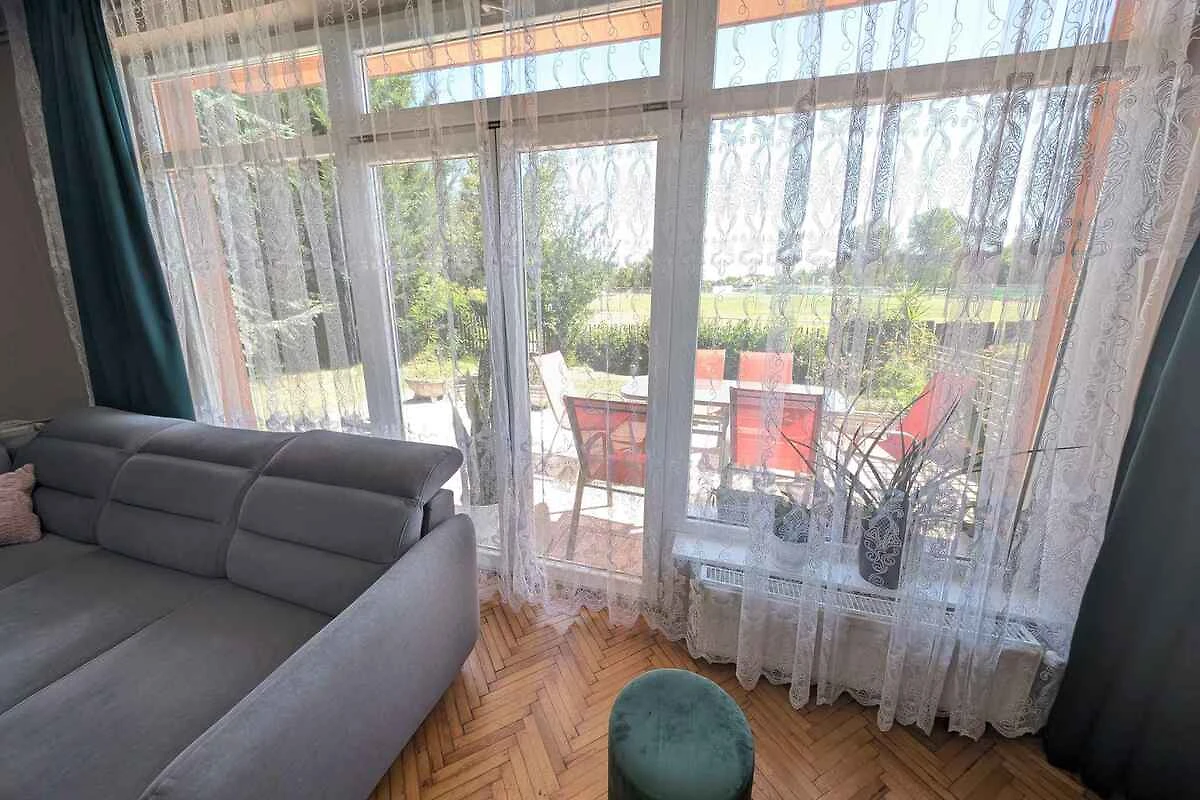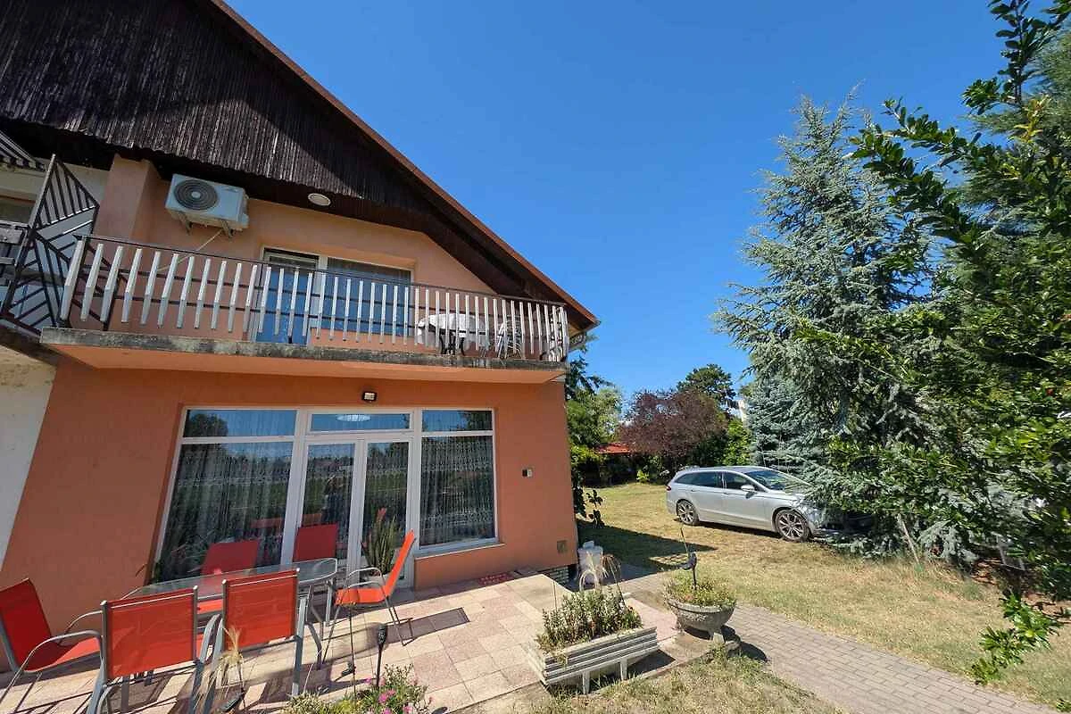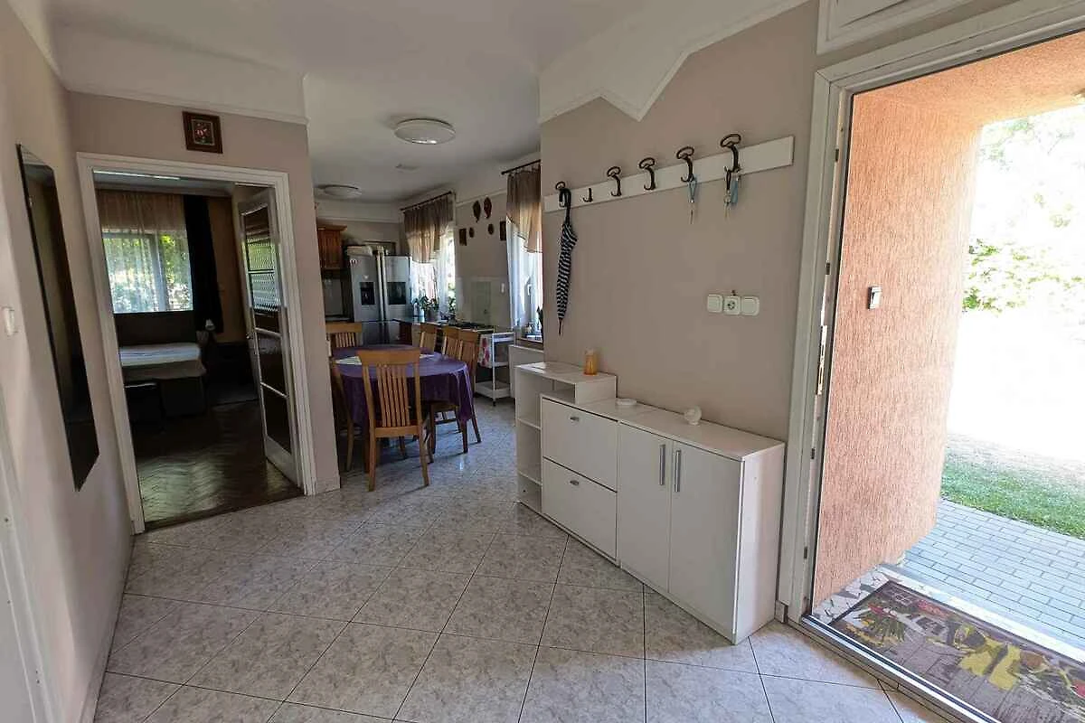 Zamárdi. Das Ferienhaus befindet sich auf einem 600 qm grossen, geschlossenen Grundstück mit Wiese, von einem Zaun begrenzt. Der Vermieter wohnt nicht im Haus oder auf dem Grundstück. Gemeinsamer Eingang. Die Zufahrt erfolgt über eine Nebenstrasse (asphaltiert). Parkplatz (für 3 Pkws) auf dem Grundstück.
