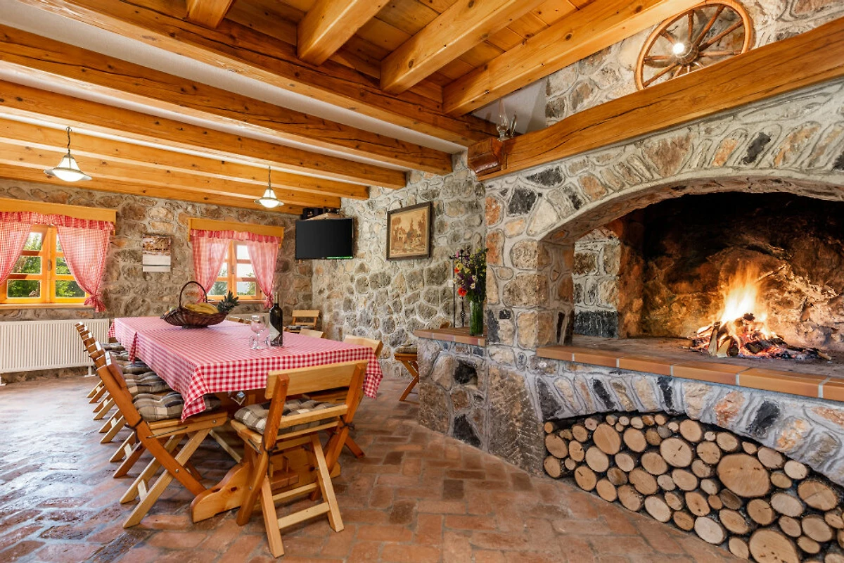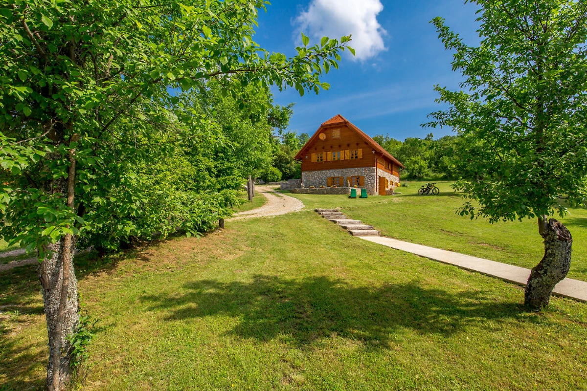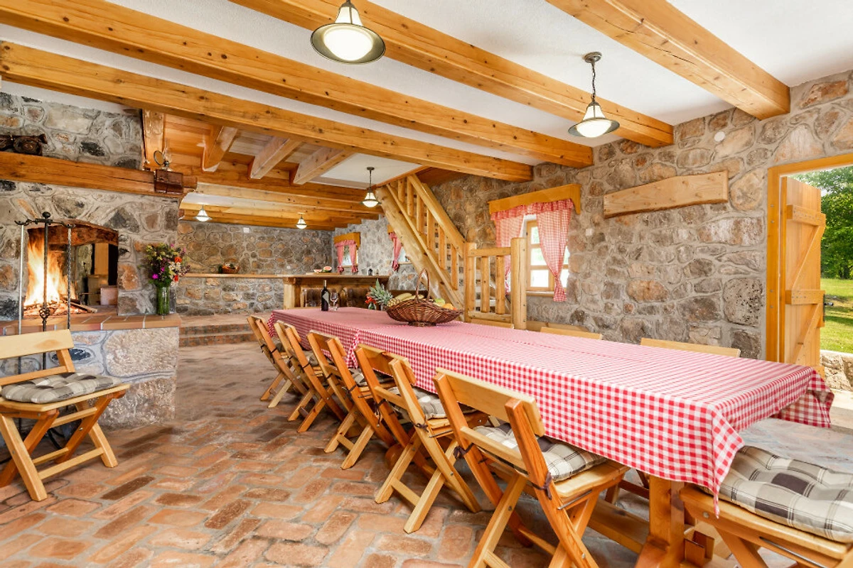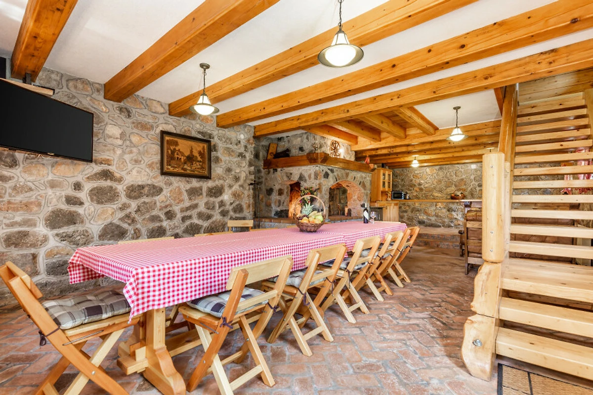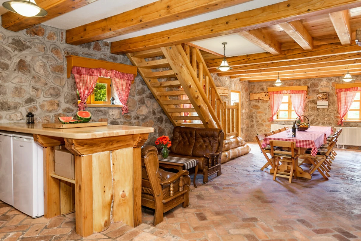 Entdecken Sie eine beschauliche ländliche Unterkunft im Eko Selo Krš, einer geräumigen Villa, die in der ruhigen Landschaft von Donji Kosinj eingebettet ist. Diese grosszügige Immobilie bietet einen idealen Rückzugsort für Familien und Gruppen und kann bis zu 18 Gäste in 7 komfortablen Schlafzimmern mit 14 Einzel- und Zusatzbetten aufnehmen.