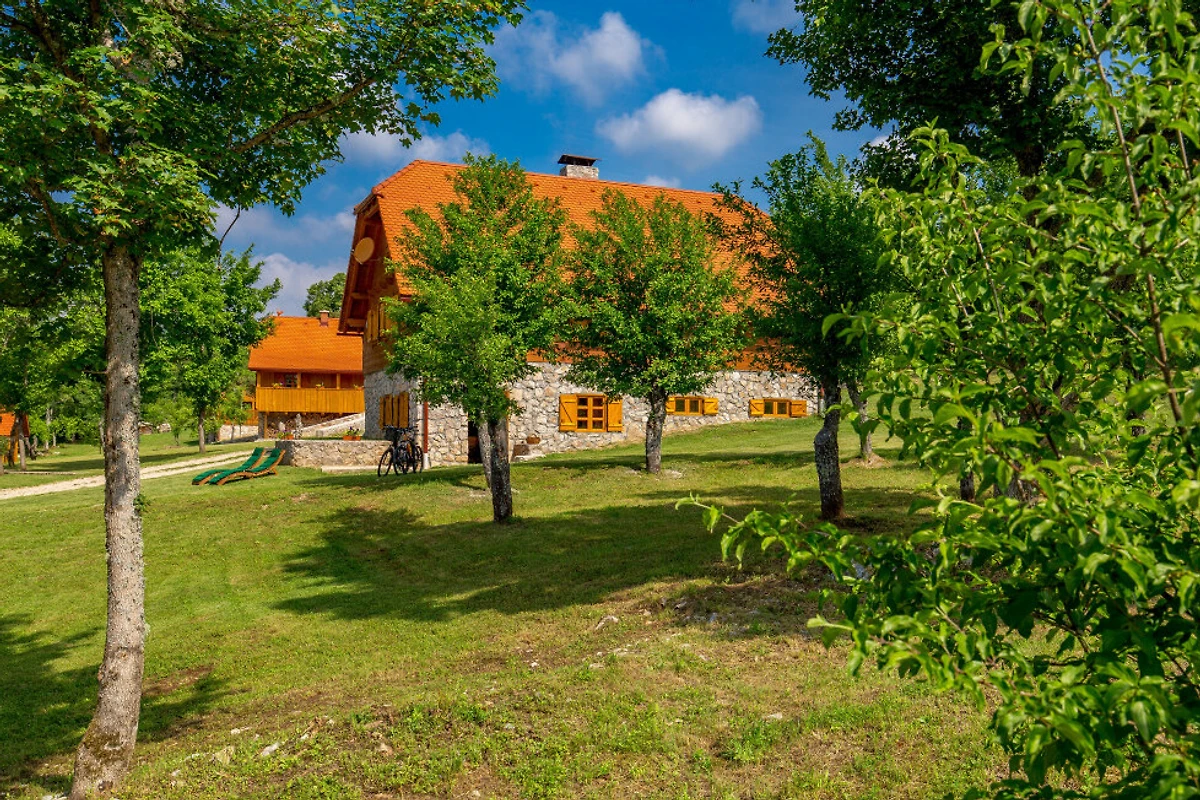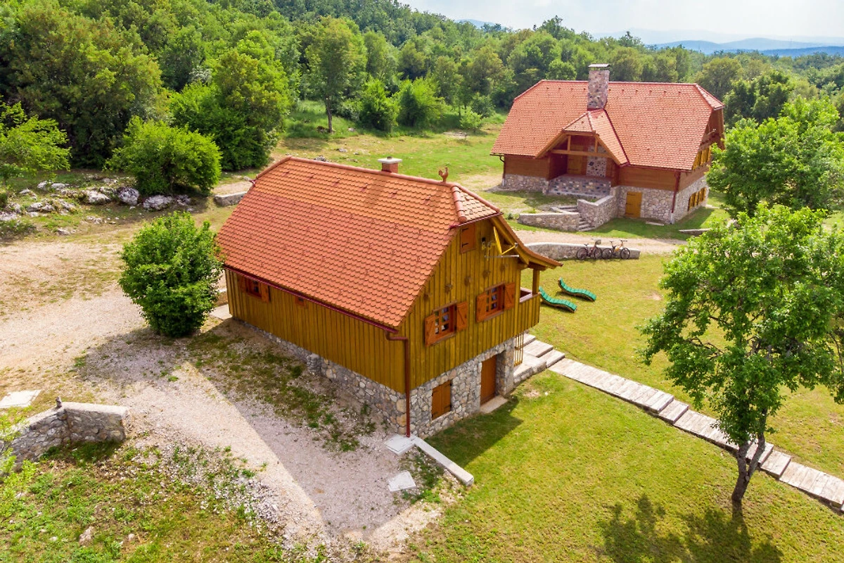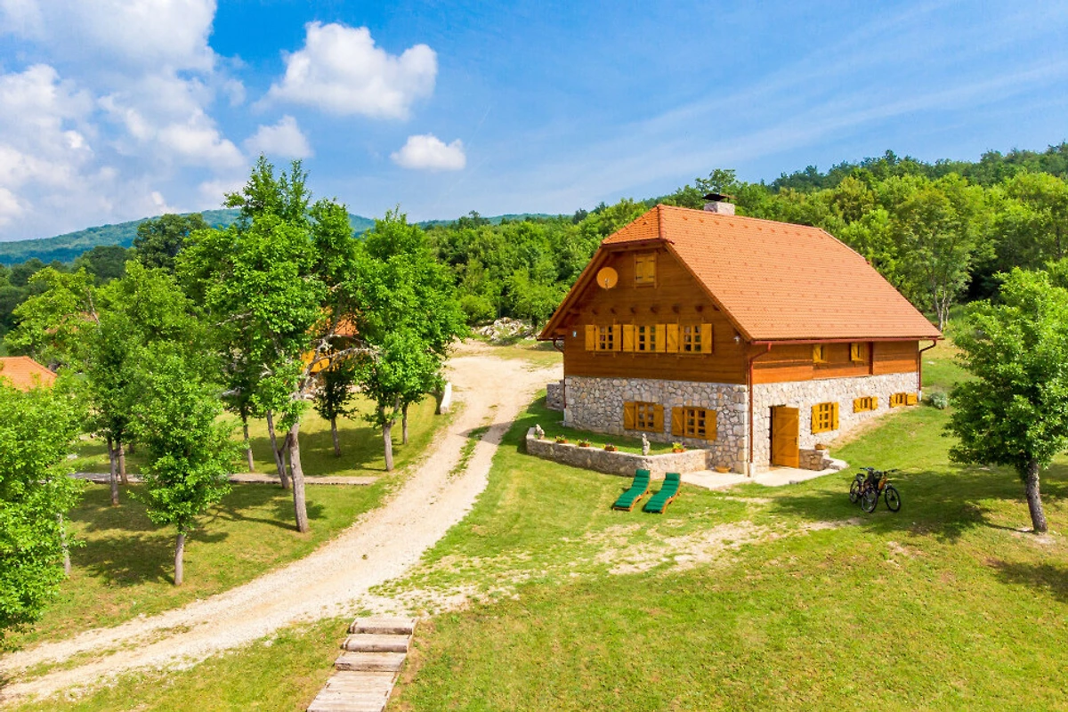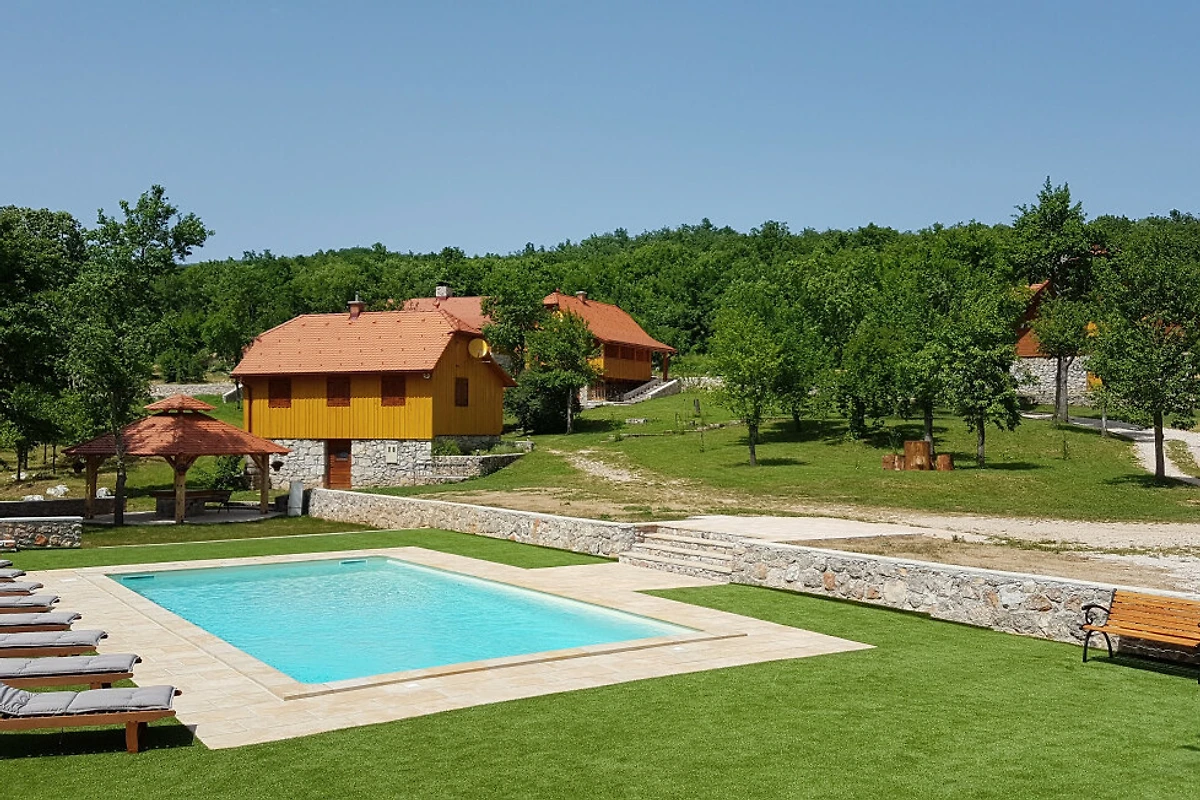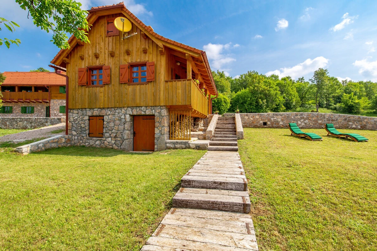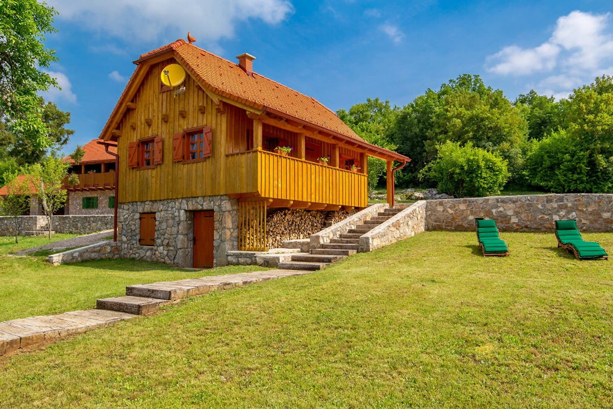 Entdecken Sie eine beschauliche ländliche Unterkunft im Eko Selo Krš, einer geräumigen Villa, die in der ruhigen Landschaft von Donji Kosinj eingebettet ist. Diese grosszügige Immobilie bietet einen idealen Rückzugsort für Familien und Gruppen und kann bis zu 18 Gäste in 7 komfortablen Schlafzimmern mit 14 Einzel- und Zusatzbetten aufnehmen.