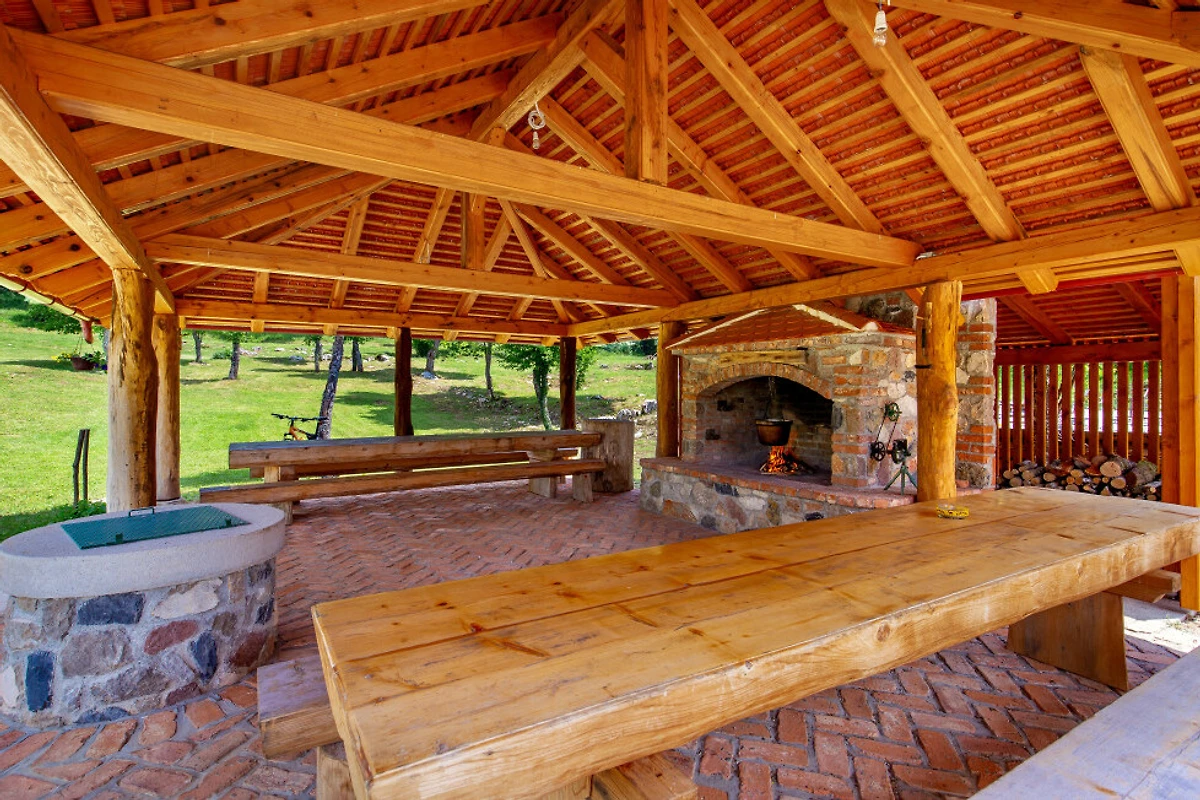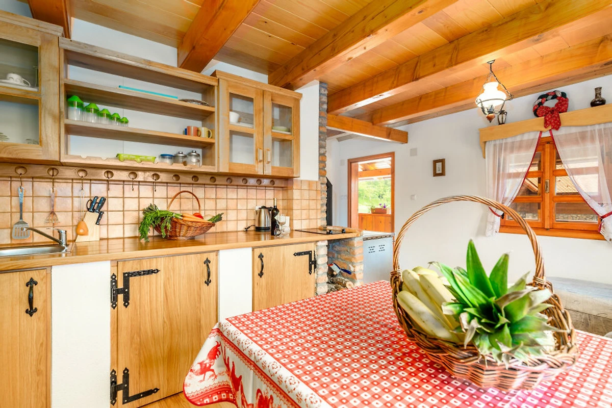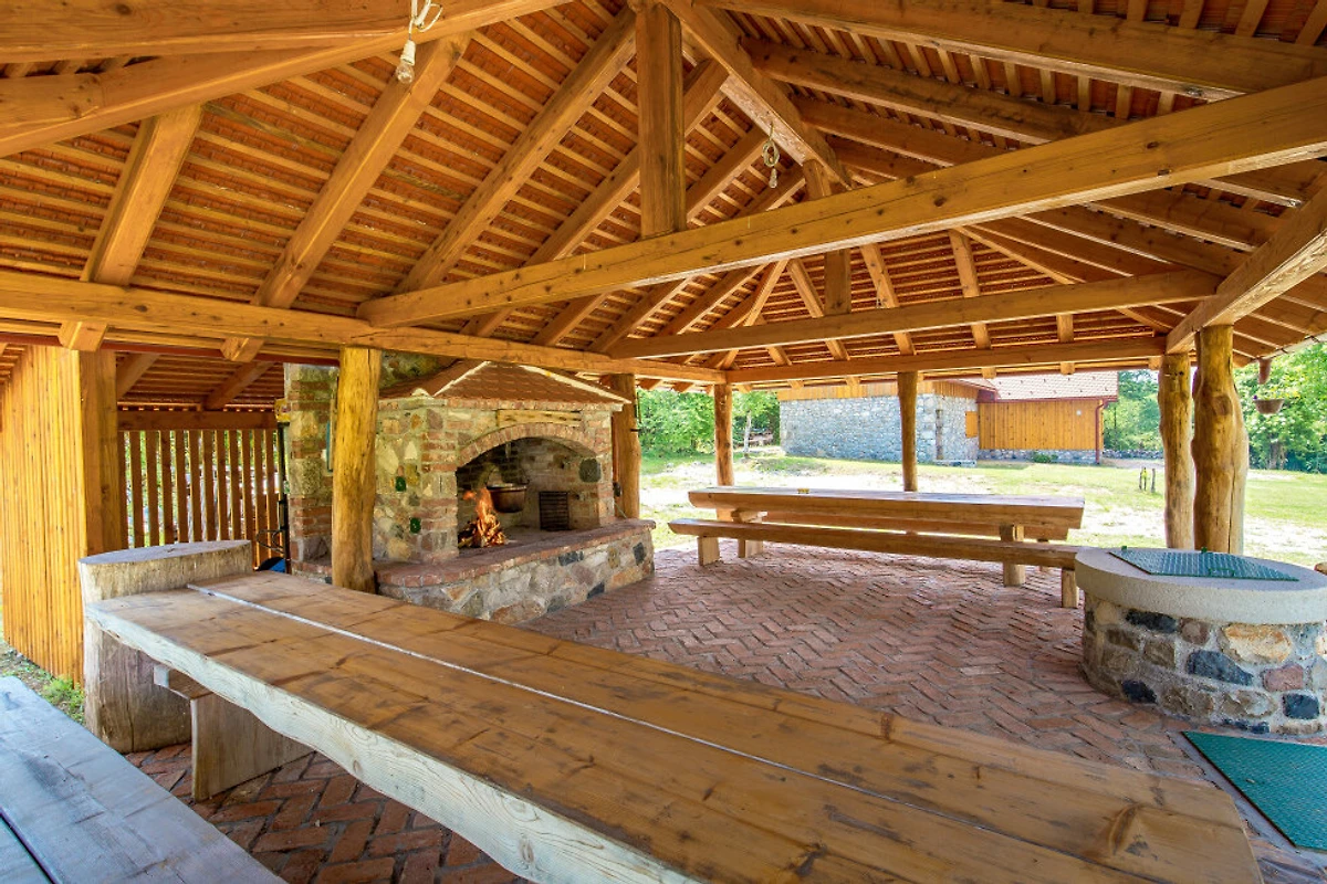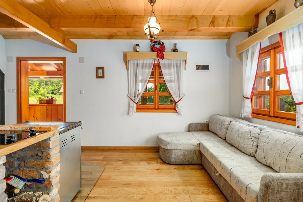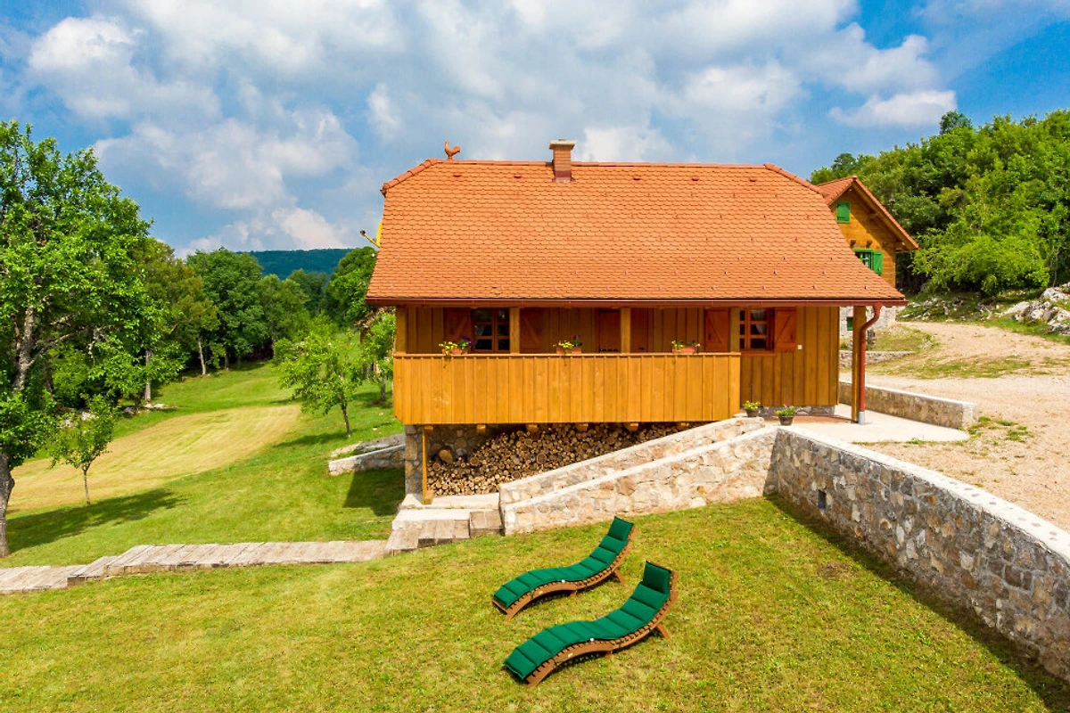 Entdecken Sie eine beschauliche ländliche Unterkunft im Eko Selo Krš, einer geräumigen Villa, die in der ruhigen Landschaft von Donji Kosinj eingebettet ist. Diese grosszügige Immobilie bietet einen idealen Rückzugsort für Familien und Gruppen und kann bis zu 18 Gäste in 7 komfortablen Schlafzimmern mit 14 Einzel- und Zusatzbetten aufnehmen.