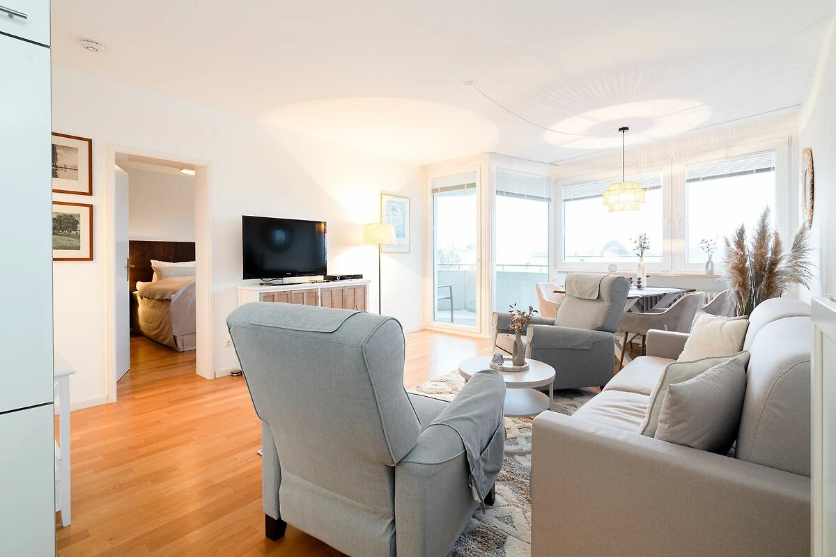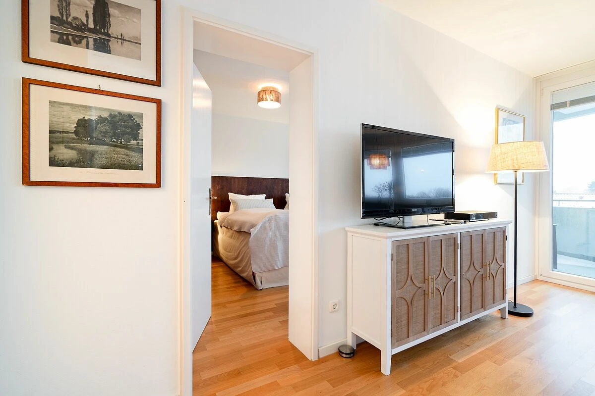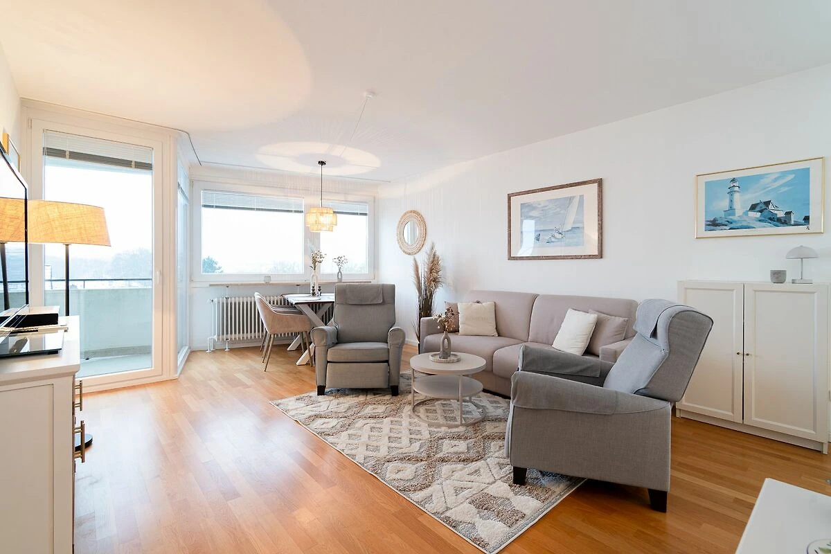 Die Ferienwohnung Beau Rivage in Scharbeutz bietet Ihnen auf 48 m² ein komfortable Unterkunft für Ihren Aufenthalt an der Ostsee. Aufgeteilt auf zwei Zimmer bietet das Apartment Platz für bis zu vier Personen und befindet sich im 4. Obergeschoss mit Aufzug eines gepflegten Hauses in direkter Nähe zum Sandstrand – nur 200 Meter trennen Sie von der Ostsee, sodass Sie das maritime Flair jederzeit genießen können.