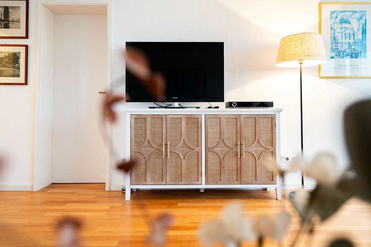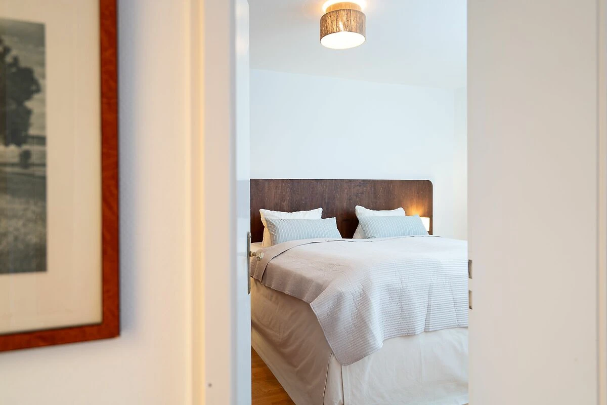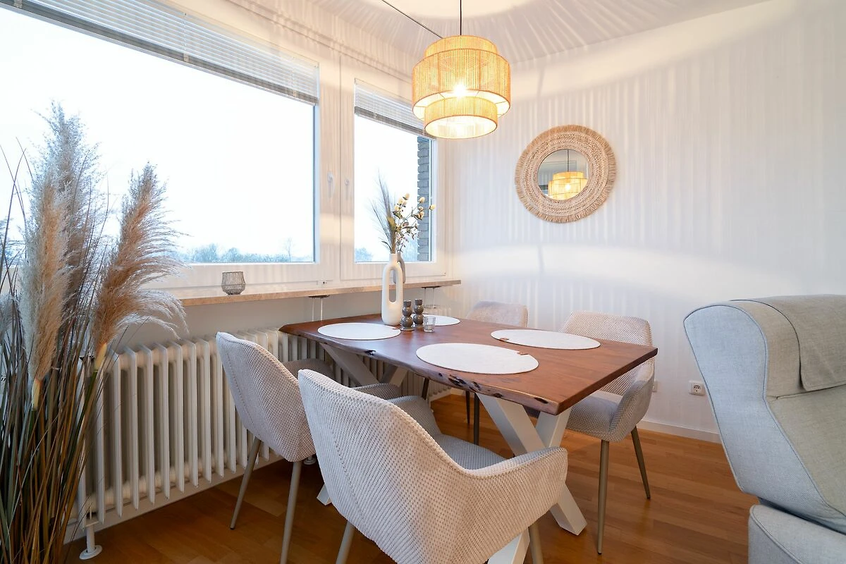 Das separate Schlafzimmer ist mit einem bequemen Doppelbett ausgestattet (2x 90 cm x 200 cm) und sorgt für erholsame Nächte. Im Wohnraum erwartet Sie eine komfortable Sofaecke mit TV, sowie ein moderner Essbereich mit Esstisch und Stühlen. Das Sofa mit Schlaffunktion bietet Platz zum Schlafen für zwei Personen. Alle Schlafräume verfügen über Sichtschutz an den Fenstern, sodass Verdunklung für erholsame Nächste gewährleistet ist.