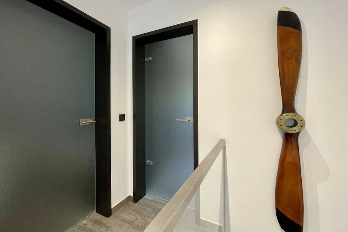 Dachgeschoss: (Eingangshalle(Heizung, Fliegenfenster), Schlafzimmer(, , Bibliothek, Doppelbett, TV, Heizung, Klimaanlage, Fliegenfenster), Schlafzimmer(, , Bibliothek, Doppelbett, TV, Heizung, Klimaanlage, Fliegenfenster), Badezimmer(, , Toilette, Dusche, Waschbecken, Heizung, Föhn, Fliegenfenster))