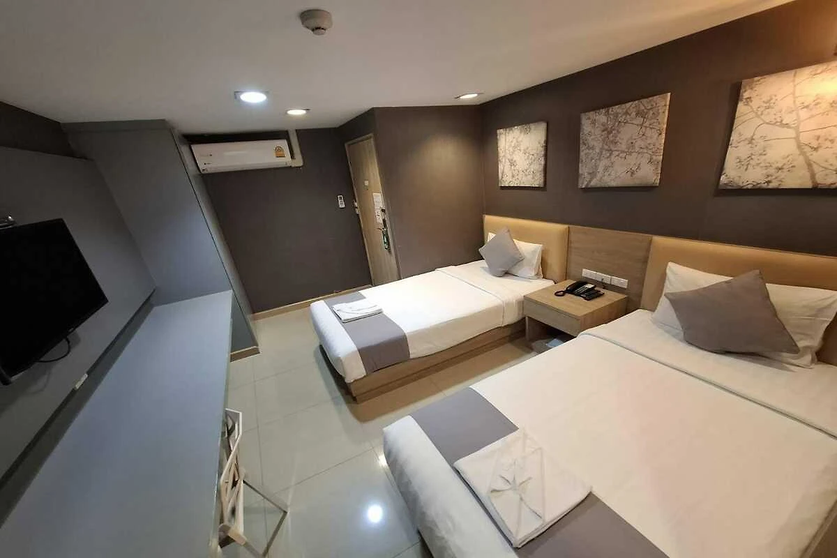 Komfortable Unterkünfte: Stilvolle Einzelbetten | Das Superior Modern Living in Bangkok bietet Familienzimmer mit eigenem Bad, Klimaanlage und kostenlosem WLAN. Jedes Zimmer verfügt über einen Schreibtisch, eine Dusche, einen Kleiderschrank und einen Fernseher.