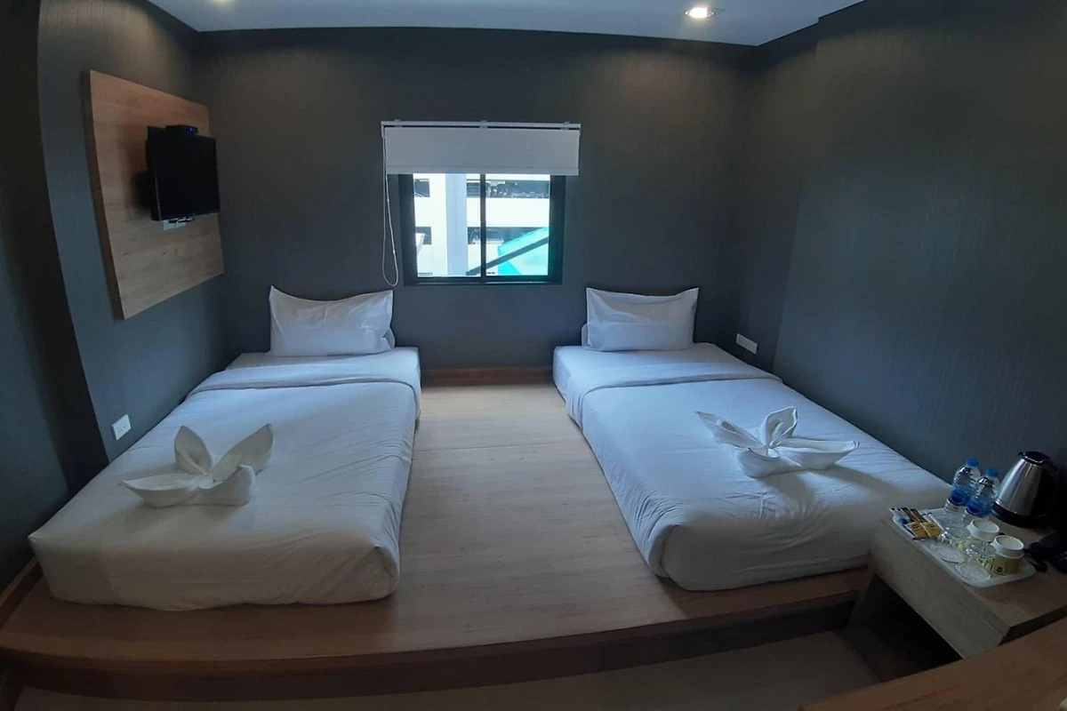 Komfortable Unterkünfte: Das geräumige Twin Escape | Deluxe Comfort for Two in Bangkok bietet Familienzimmer mit eigenem Bad, Klimaanlage und kostenlosem WLAN. Jedes Zimmer verfügt über einen Schreibtisch, eine Dusche, einen Kleiderschrank und einen Fernseher.