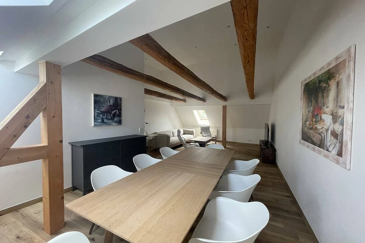 Entdecken Sie Ihren nächsten Urlaubstraum: Die Ferienwohnung "Achter de Muer I DG" in Röbel/Müritz. Dieses charmante Dachgeschoss-Apartment bietet auf 100 Quadratmetern ausreichend Platz für bis zu 8 Gäste, verteilt auf 2 gemütliche Schlafzimmer und 1 modern ausgestattetes Badezimmer. Die Wohnung zeichnet sich durch eine stilvolle Inneneinrichtung mit Holzboden und sichtbaren Deckenbalken aus, was eine warme und einladende Atmosphäre schafft.