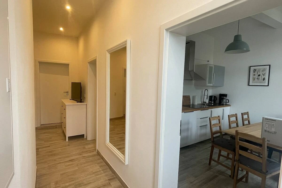 Die Wohnung besticht durch ihre stilvolle Einrichtung mit Holzböden und modernen Möbeln, die eine warme und einladende Atmosphäre schaffen. Die Schlafzimmer sind mit bequemen Betten und frischer Bettwäsche ausgestattet, um Ihnen einen erholsamen Schlaf zu garantieren.