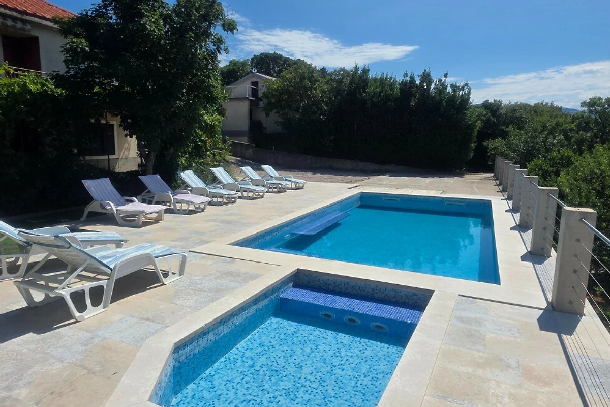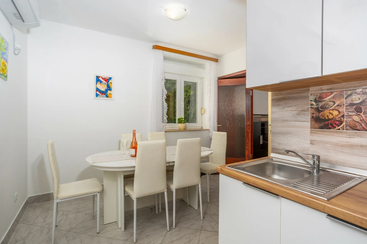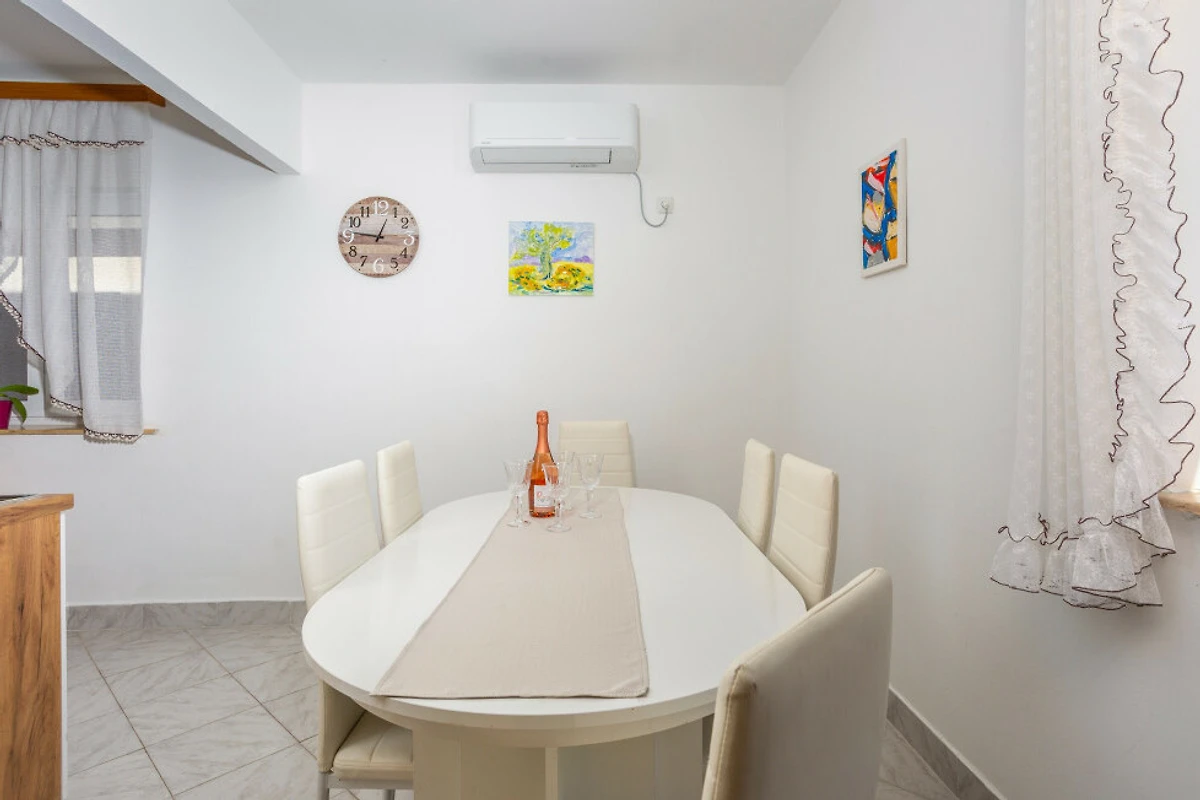 Moderne Annehmlichkeiten umfassen Klimaanlage, WLAN, Satellitenfernsehen und ein Bügeleisen für die Bequemlichkeit der Gäste. Haustierbesitzer werden erfreut sein zu erfahren, dass bis zu 2 Tiere willkommen sind. Die Villa befindet sich in einem gut erschlossenen Stadtgebiet, nur 1 km von einem Felsstrand, 1,3 km vom Stadtzentrum Novi Vinodolski und 1,5 km von einem Supermarkt entfernt.