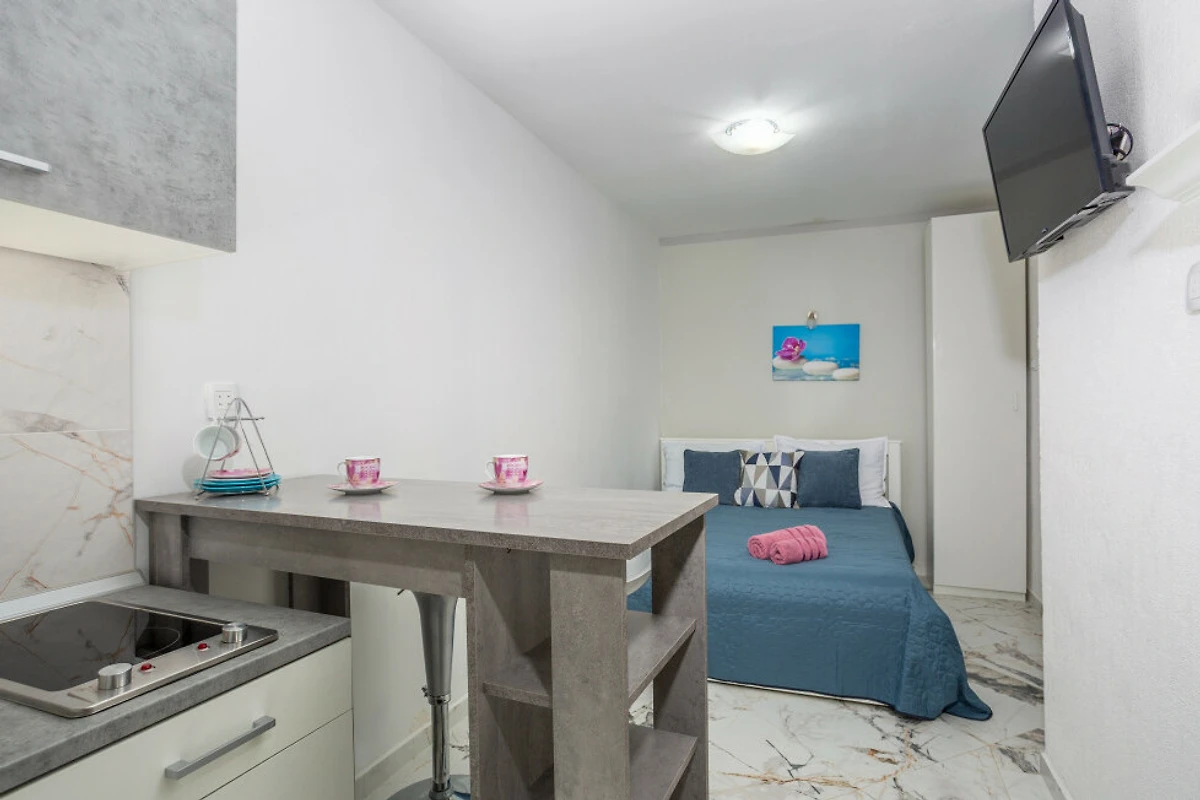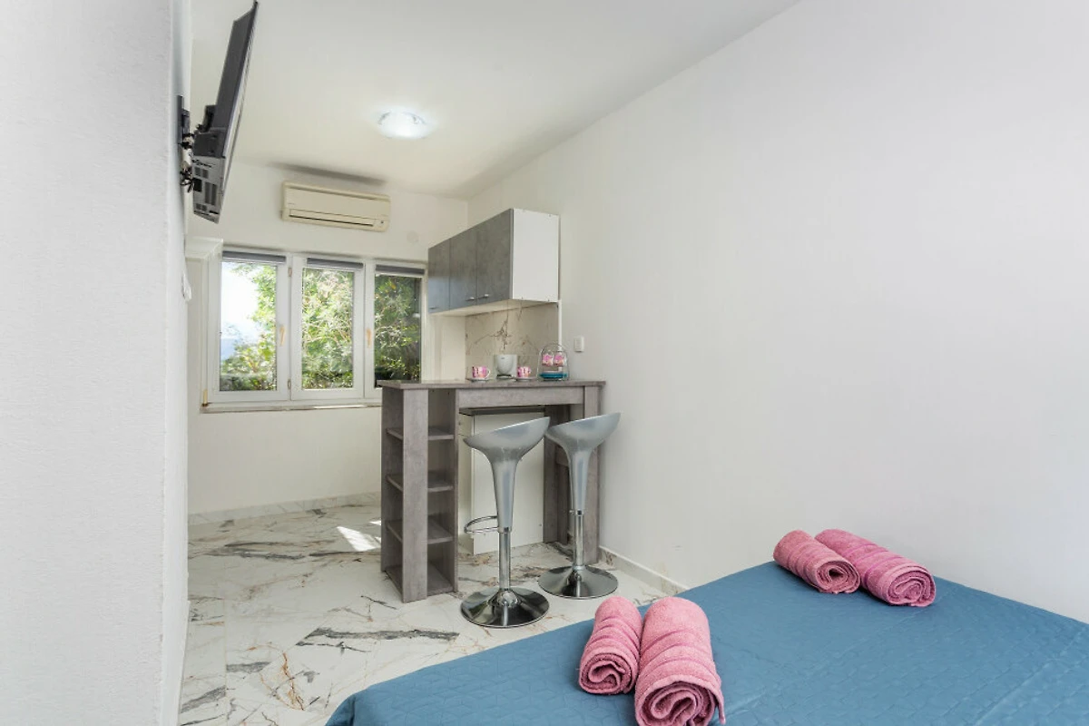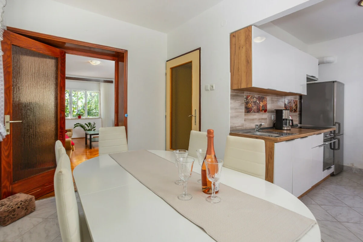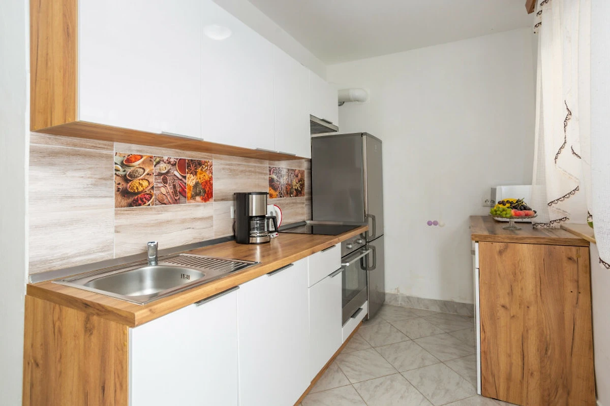 Moderne Annehmlichkeiten umfassen Klimaanlage, WLAN, Satellitenfernsehen und ein Bügeleisen für die Bequemlichkeit der Gäste. Haustierbesitzer werden erfreut sein zu erfahren, dass bis zu 2 Tiere willkommen sind. Die Villa befindet sich in einem gut erschlossenen Stadtgebiet, nur 1 km von einem Felsstrand, 1,3 km vom Stadtzentrum Novi Vinodolski und 1,5 km von einem Supermarkt entfernt.