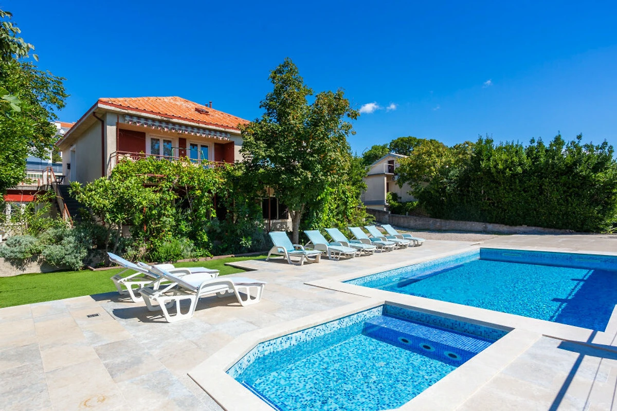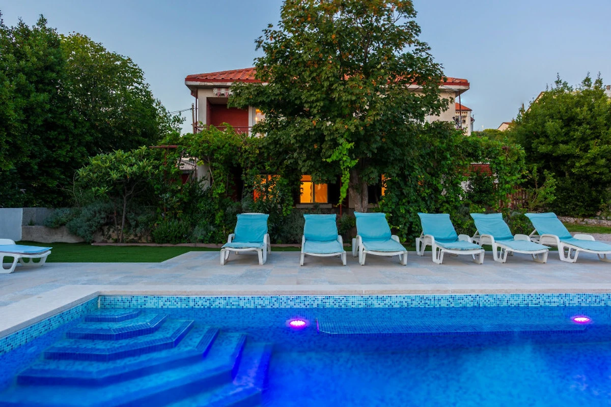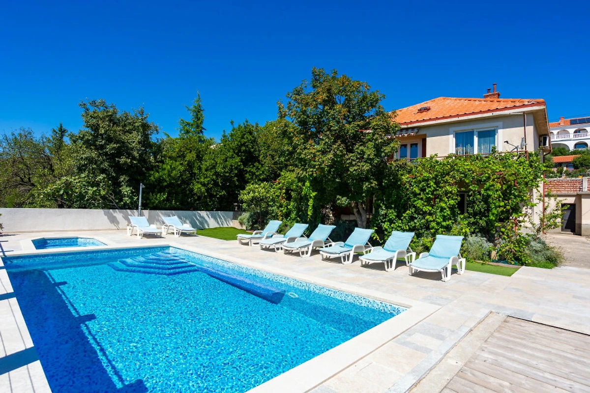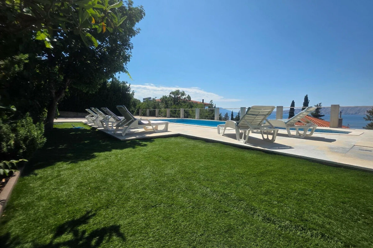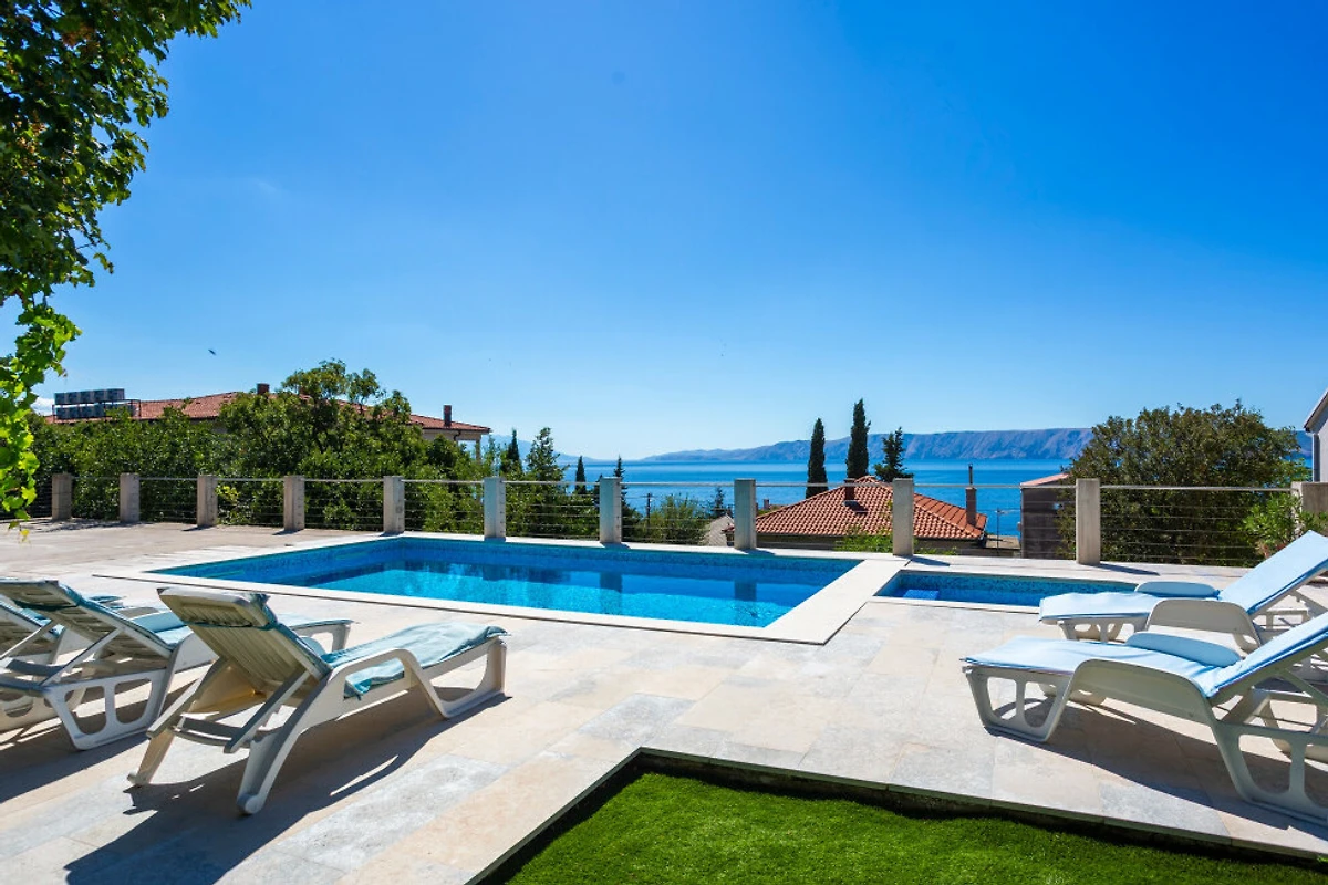 Villa Nina bietet einen entzückenden Rückzugsort für Familien und Paare, die ein komfortables und gut ausgestattetes Ferienhaus in Novi Vinodolski suchen. Diese geräumige 160 Quadratmeter grosse Immobilie verfügt über atemberaubende Ausblicke auf das Meer, die Berge, den Pool und den Garten und bietet eine malerische Kulisse für einen unvergesslichen Aufenthalt.