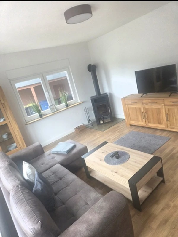 zwei einladende Schlafzimmer und ein modernes ausgestattetes Badezimmer. Der Wohnbereich ist mit einem gemütlichen Kamin ausgestattet, der für wohlige Wärme sorgt. Die voll ausgestattete Küchenzeile inklusive Geschirrspüler, Mikrowelle, Wasserkocher und Kaffeemaschine ermöglicht die Zubereitung köstlicher Mahlzeiten, die Sie am eleganten Esstisch genießen können. Zudem steht eine Waschmaschine zur Verfügung, was besonders bei Langzeitaufenthalten praktisch ist.