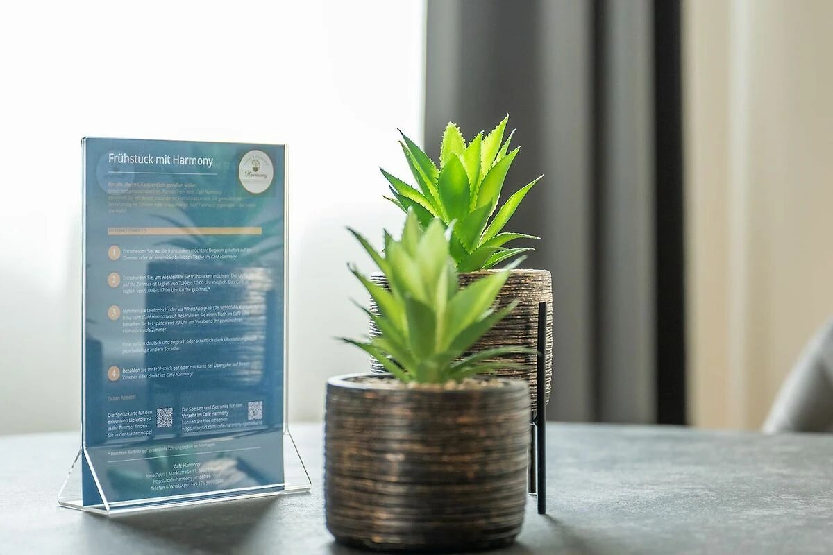 Für die Gäste, die ihren Urlaub richtig geniessen möchten, bieten wir einen Frühstücksservice der ganz besonderen Art. Das benachbarte Café Harmonie verköstigt Sie mit einem selbstgemachten Frühstücksangebot. Sie haben die Qual der Wahl, Frühstück im Schlafanzug auf Ihrem Zimmer oder Frühstück im Café Harmony direkt gegenübe