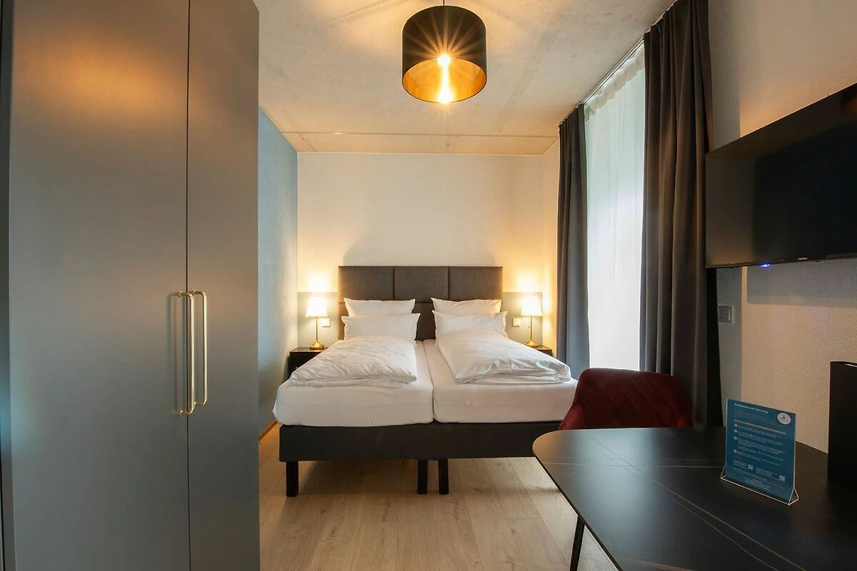 Das Adler begrüsst Sie seit dem 01. September 2025! 2 Jahre Planung und knapp 3 Jahre Bauzeit wurden benötigt, den aus dem 18. Jahrhundert stammenden Gasthof Adler wieder zum Fliegen zu bringen. Die umfangreiche Vergoldungskur umfasste eine Kernsanierung des gesamten Gebäudes, einen kompletten Anbau auf der Ostseite sowie eine Aufstockung um ein Wohngeschoss. Im 1. OG, 2. OG und 3. OG lädt Sie der goldene Adler ein, über den historischen Dächern von Markdorf zu logieren. Im Erdgeschoss begrüsst Sie in alten Mauern jedoch im neuen Glanz ein kulinarisches Restaurant. Aus einer ehemaligen Kegelbahn in einem historischen Gewölbekeller ist die Szenenbar von Markdorf geworden. Auf 3 Stockwerken wurden insgesamt 14 1-Zimmer-Apartments, zwei 2-Zimmer-Apartments und zwei 3-Zimmer-Apartments geschaffen. Die insgesamt 18 Apartments werden in 6 verschiedenen Kategorien aufgeteilt, welche sich bei gleicher Ausstattung und Komfort durch Zimmergrösse und Raumaufteilung unterscheiden.as Adler entstand aus einem traditionsreichen Gasthaus mit vielen Geschichten und trifft nun auf ein modernes und zeitgenössisches Konzept für Jung und Alt. Ob für den Familienurlaub, den kurzen Städtetrip oder die Geschäftsreise, Tradition wird bei uns NEU geschrieben.