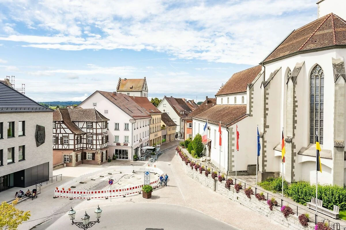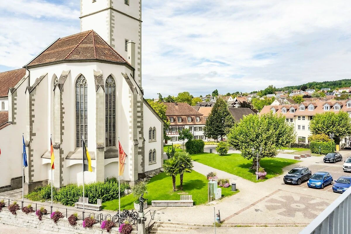 Das Adler steht im historischen Ortskern von Markdorf direkt am Marktplatz, umgeben von der Altstadt, der Kirche und dem Rathaus. Die Apartments haben eine tolle Aussicht auf die Grünanlage der Stadt, den Gehrenberg oder in Richtung Süden auf den Bodensee und teilweise die Alpenkette. Die zentrale Lage inmitten der Fussgängerzone von Markdorf mit seinen 14.000 Einwohnern, macht das Auto nahezu überflüssig. Geschäfte, Bäcker, Metzger und vieles mehr laden ein, das alte und neue Markdorf zu geniessen. Zum Frühstücken, Mittagessen, Abendessen sowie für das abendliche Programm bietet Markdorf eine Vielzahl an Gastronomieangeboten und Bars. Auch die öffentlichen Verkehrsmittel sind in wenigen Gehminuten erreichbar. Den Bahnhof mit direkter Anbindung an Friedrichshafen, Überlingen und Radolfzell erreichen Sie in 10 Gehminuten. Die vielen Haltestellen des gut ausgebauten Busnetzes, unter anderem nach Salem, Konstanz und Ravensburg, erreichen Sie ebenfalls in 5 Minuten. Für Urlauber liegt Markdorf ideal zwischen Überlingen, Meersburg, Friedrichshafen und Ravensburg. Zu Fuss ist man schnell im Grünen, zum Wandern im Deggenhausertal, zum Mountainbiken auf dem Gehrenberg oder zum Flanieren und Baden am Bodensee. Über Fahrrad- und Wanderwege erreichen Sie auch ohne Auto in kurzer Zeit den Bodensee mit seinen zahlreichen Freibädern und Promenaden. Das Adler ist auch für Geschäftsreisende ideal, da man fussläufig alle grösseren Firmen in Markdorf, wie Weber, Wagner, Alpla und Wälischmiller erreicht. In nur wenigen Fahrminuten erreicht man Friedrichshafen mit dem Flughafen, der Messe sowie den Firmen Zeppelin, ZF und MTU/Rolls-Royce sowie Immenstaad mit der Firma Airbus oder Überlingen mit der Firma Diehl.
