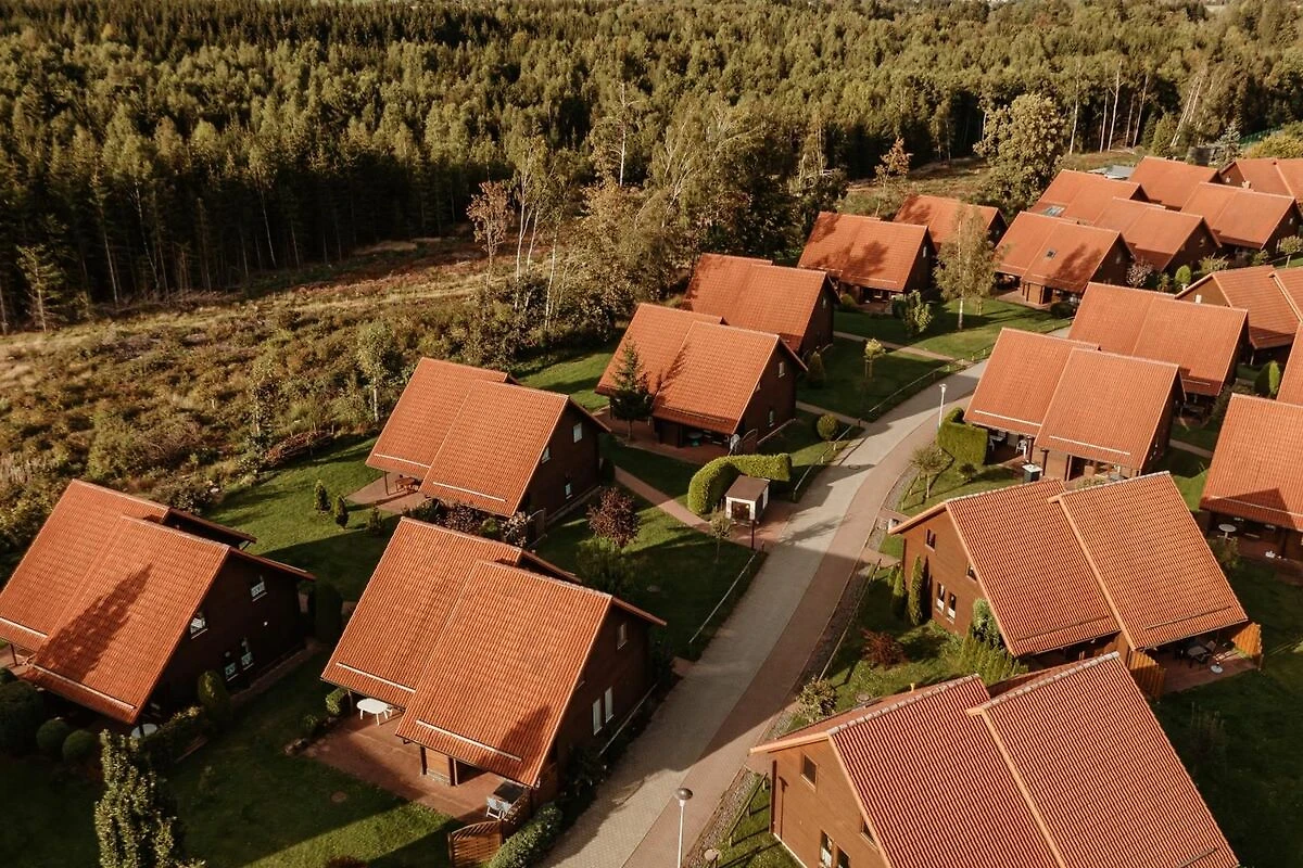 Tauchen Sie ein in die Natur! Unser Feriendorf ist der perfekte Ort, um den Alltag hinter sich zu lassen und die Ruhe des Harzes zu geniessen. Ihr Zuhause auf Zeit: Eines der 64 gemütlichen Ferienhäuser, die durch ihre Holzbauweise einen rustikalen Charme und Gemütlichkeit versprechen. Die grosszügigen 3-Zimmer-Doppelhaushälften bieten auf ca. 65 m² genug Raum für bis zu 6 Personen