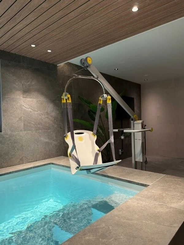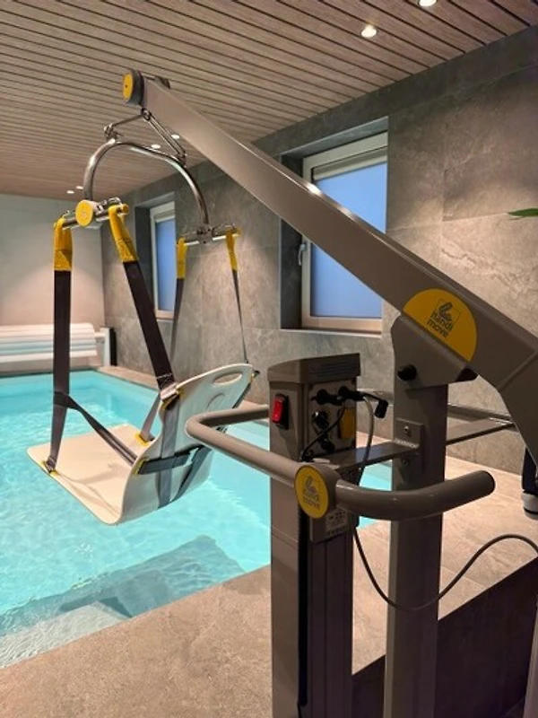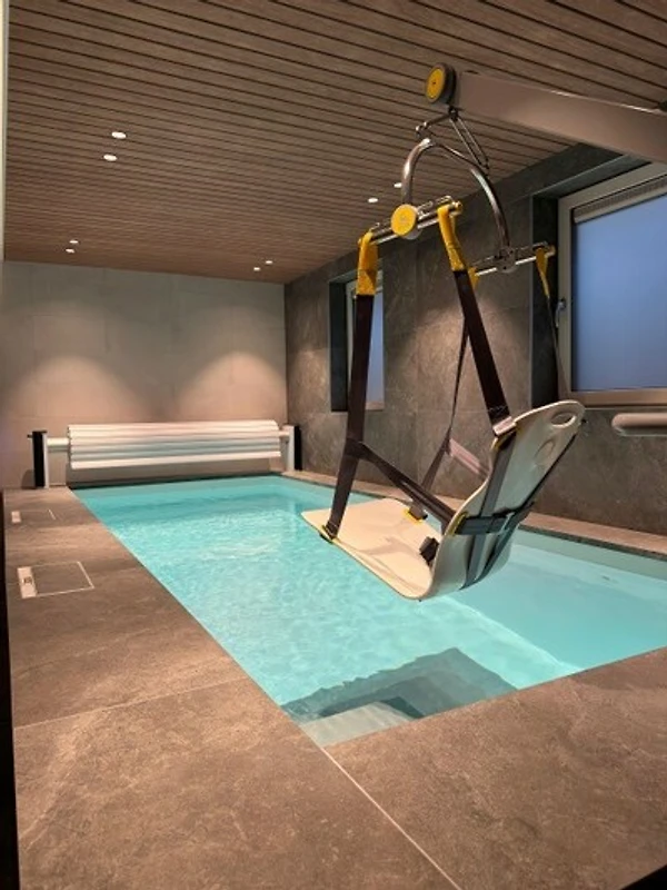Ein Treppenlift ermöglicht den Zugang zum voll ausgestatteten Spa- & Wellnesskeller, der somit auch für mobilitätseingeschränkte Gäste gut erreichbar ist. Hier finden Sie alles, was Sie zur Entspannung benötigen: ein Innenpool, eine Sauna und ein Whirlpool.Der Wellnessbereich ist rollstuhlgerecht und bietet zusätzliche Einrichtungen wie:einen Rollstuhl im Untergeschosseine angepasste Dusch- und Toiletteneinrichtungeinen mobilen Hebelift für den Zugang zum Pooleinen zusätzlichen mobilen DuschstuhlDarüber hinaus gibt es im Keller eine Duschmöglichkeit und ein separates WC, sodass Sie ungestört relaxen können.Nachhaltig und komfortabel