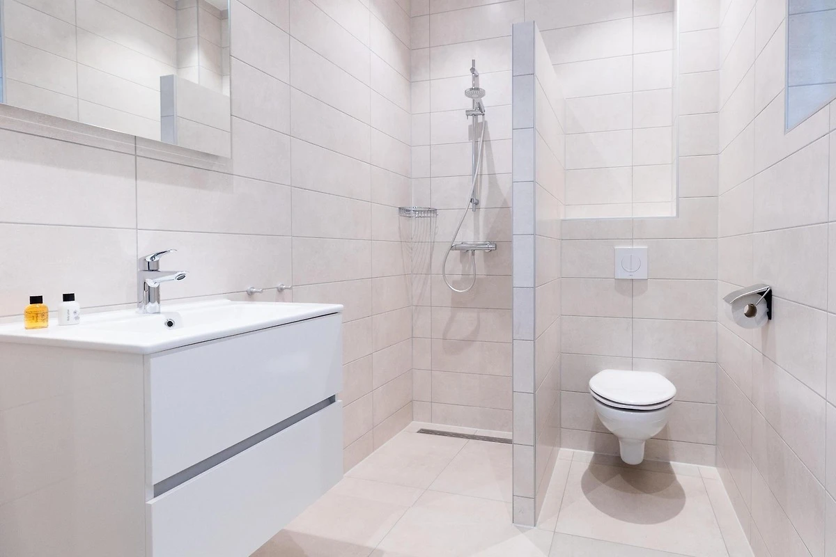 Im Erdgeschoss finden Sie ein grosszügiges, stilvoll eingerichtetes Wohnzimmer mit modernem Fernseher. Die offene Küche ist mit hochwertigen Einbaugeräten ausgestattet, darunter ein Quooker, ein Geschirrspüler und eine grosse Kühl-Gefrierkombination. Durch die Flügeltüren im Wohnzimmer gelangen Sie direkt auf die überdachte Veranda mit Terrasse, umgeben von einem wunderschön angelegten Garten.Ebenfalls im Erdgeschoss befinden sich zwei Schlafzimmer mit eigenen Badezimmern sowie ein separates WC. Eines der Badezimmer ist speziell für Menschen mit eingeschränkter Mobilität angepasst und verfügt über:eine angepasste Toilette mit Stützgriffeneine geräumige befahrbare Dusche mit Sitzmöglichkeitbreite Türöffnungen für einfache ZugänglichkeitObergeschoss