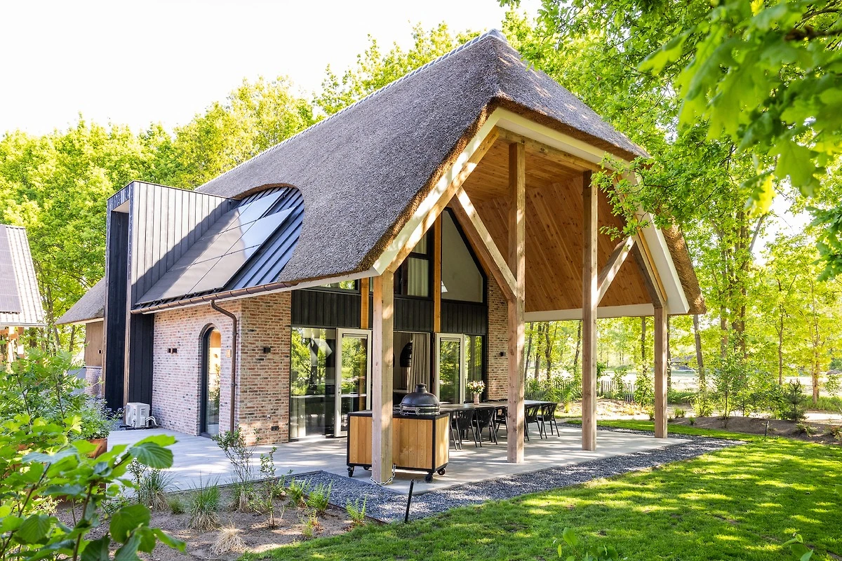 Mit ihrem Reetdach und zwei charmanten Gauben strahlt die Boerderij Villa Wellness ein ländliches und zugleich luxuriöses Ambiente aus.Hinweis: Jede Villa ist einzigartig, daher können Gartenlayout, Einrichtung und Farbgestaltung von den Bildern auf der Website abweichen. Der hohe Standard von Luxus und Komfort bleibt jedoch stets gewährleistet.