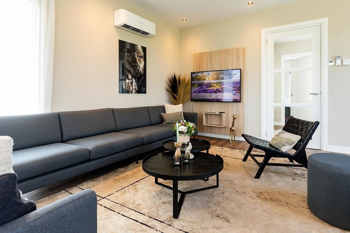 Die Boerderij Villa Wellness ist vollständig gasfrei und mit nachhaltigen Technologien wie wassersparenden Duschköpfen und LED-Beleuchtung ausgestattet. Dennoch müssen Sie nicht auf Komfort verzichten: Die Villa verfügt über Klimaanlage und Fussbodenheizung, was sie zu jeder Jahreszeit angenehm macht.Luxuriöses Ländliches Flair