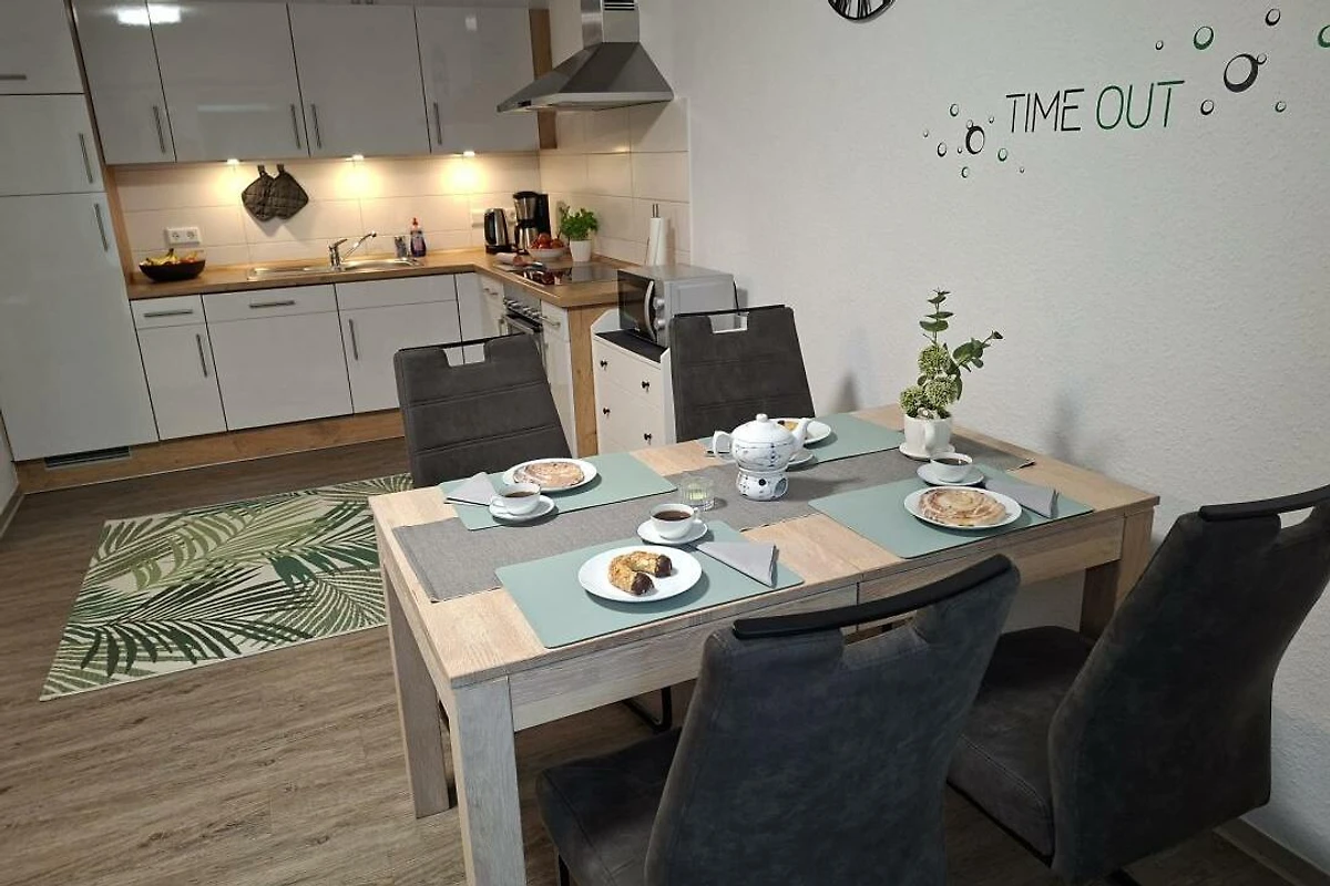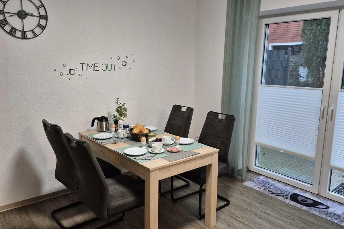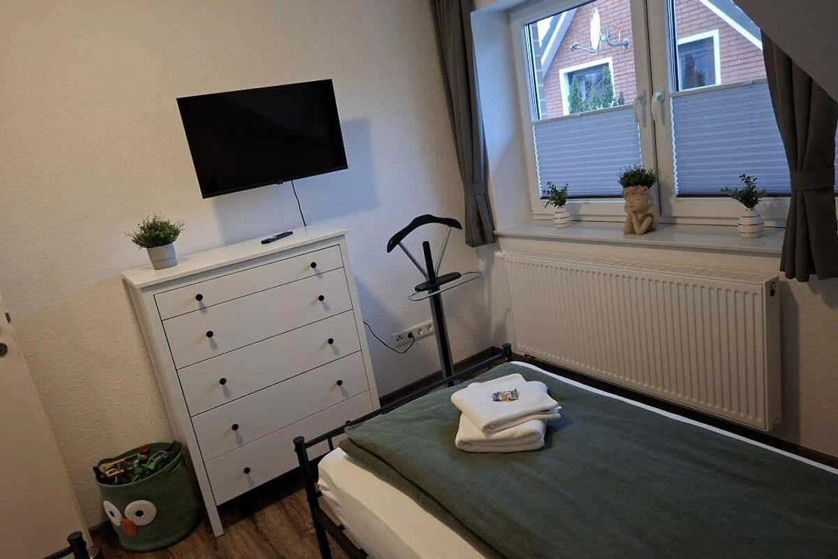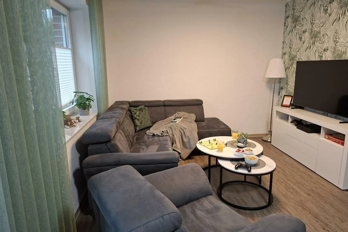 Modernes Ferienhaus in ruhiger Lage – ideal für Familien, geschäftliche Aufenthalte oder ein entspanntes privates Wochenende. Dieses neu eingerichtete und modern ausgestattete Ferienhaus bietet auf ca. 100 m² Wohnfläche ausreichend Platz für bis zu 4 Personen plus Kleinkind.(Babybett vorhanden) Das helle und freundliche Reihenhaus verfügt über zwei komfortable Schlafzimmer: eines mit Doppelbett, eines mit zwei Einzelbetten sowie eine zusätzliche Schlafmöglichkeit auf dem Schlafsofa im Wohnbereich. Zwei moderne Badezimmer mit Dusche und WC sorgen dafür, dass auch bei mehreren Gästen kein morgendlicher Stau entsteht. Die voll ausgestattete Küche, Smart-TV (nutzbar mit Ihren Streaming-Diensten) sowie kostenfreies WLAN machen den Aufenthalt noch angenehmer. Für längere Aufenthalte stehen Ihnen auch Waschmaschine und Trockner zur Verfügung. Im Aussenbereich erwarten Sie: zwei private Parkplätze direkt am Haus (einer davon überdacht), ein abschliessbarer Abstellraum für Ihre Fahrräder und E-Bikes. Die Lage ist ruhig, aber dennoch zentral – in der Nähe der niederländischen Grenze und dem Naturparadies Dollart, perfekt für Ausflüge, Spaziergänge oder Fahrradtouren. Haustiere sind auf Anfrage und gegen eine Gebühr von 10 € pro Nacht herzlich willkommen. Wir freuen uns darauf, Sie bald als unsere Gäste begrüssen zu dürfen – sichern Sie sich jetzt Ihren Wunschtermin für einen erholsamen Aufenthalt!