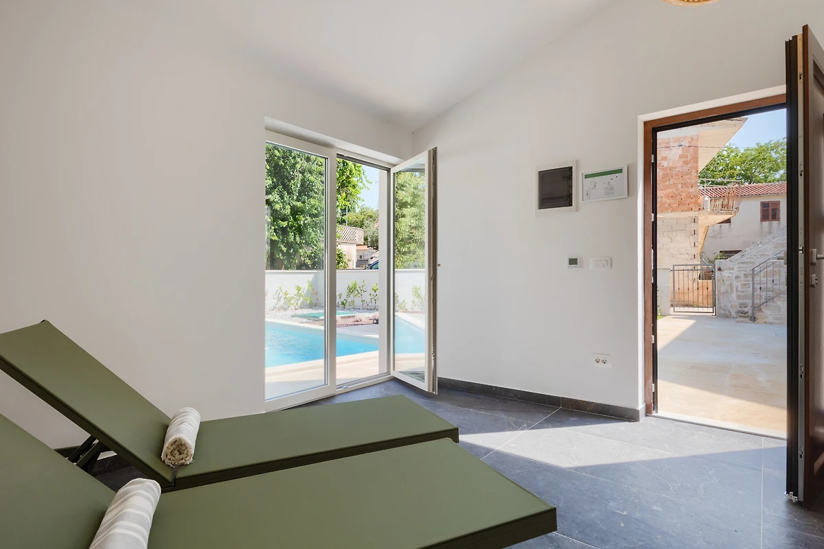 Ein Highlight von Villa Andrea ist der private 6x3 Meter grosse Swimmingpool, der atemberaubende Blicke auf Pool und Garten bietet. Gäste können nach einem Tag der Erkundung in der Sauna entspannen. Die Unterkunft verfügt über 2 private Aussenparkplätze, was den Transport bequem macht.