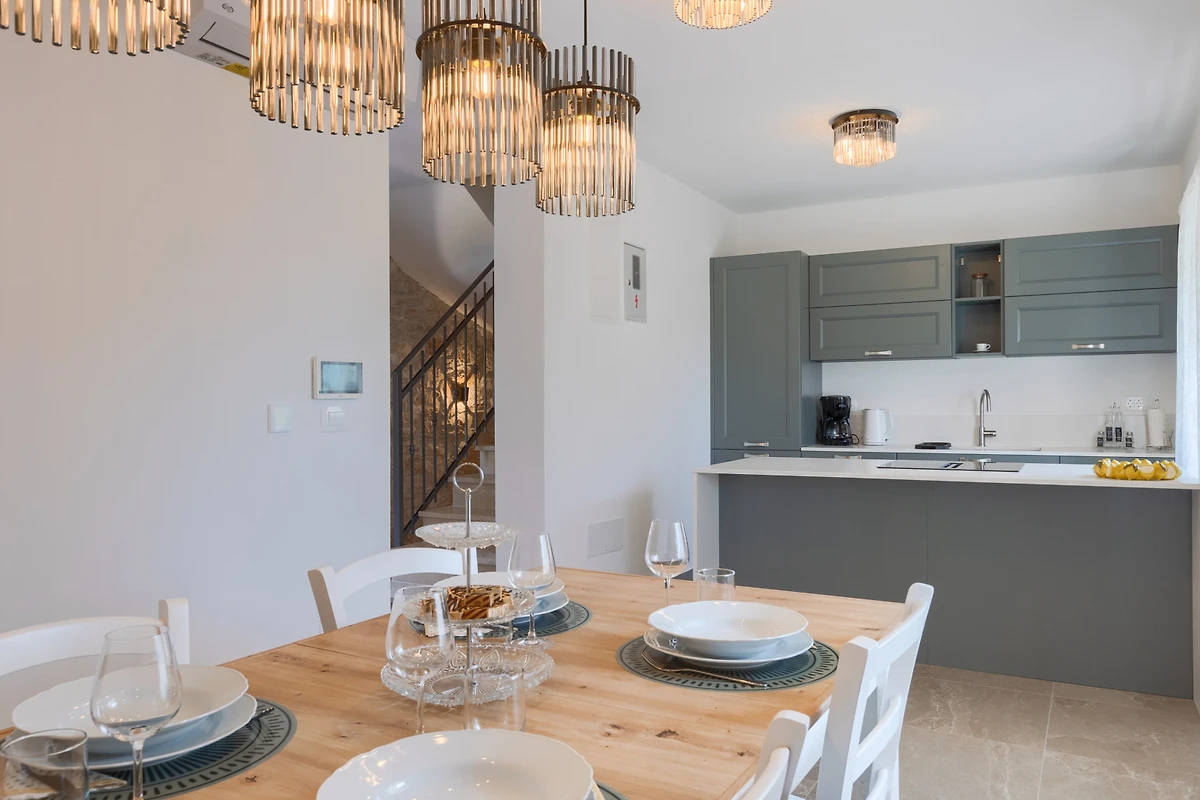 Die Villa bietet eine voll ausgestattete amerikanische Küche mit Glaskeramik-Kochplatten, Kühlschrank, Gefrierschrank, Ofen, Geschirrspüler, Kaffeemaschine und essentieller Küchenausstattung. Bleiben Sie mit kostenlosem WLAN verbunden und geniessen Sie Unterhaltung auf dem Satelliten-TV.