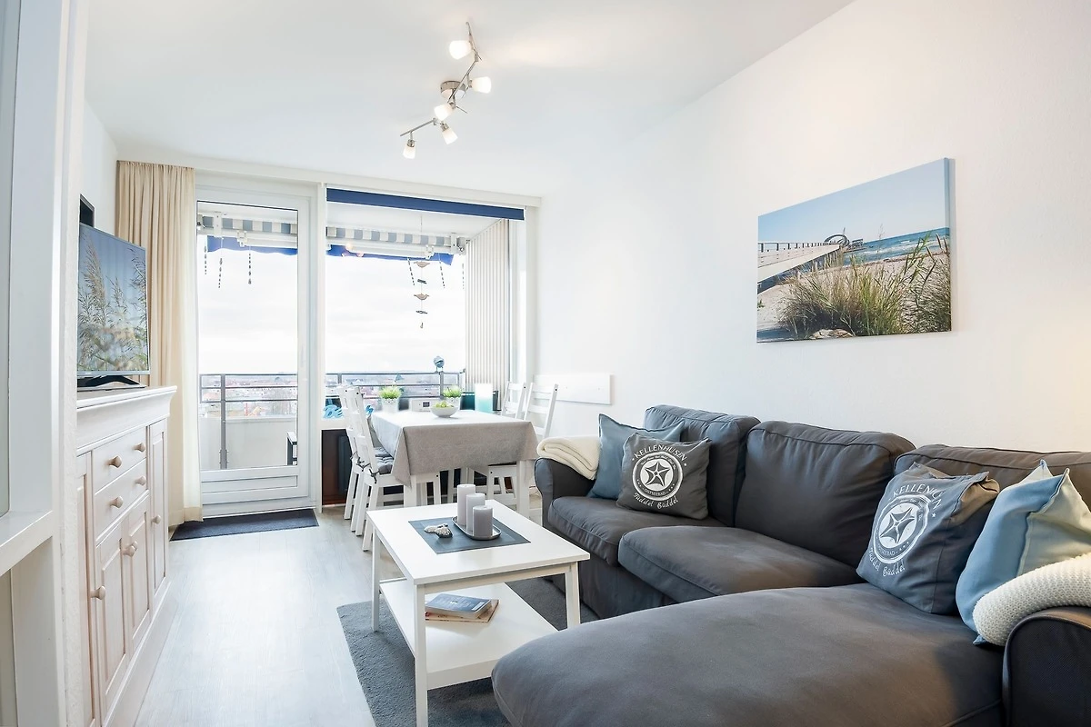 Highlight ist der möblierte Balkon mit seitlichem Blick auf unsere wunderschöne Ostsee. Die Südlage verspricht sonnige Stunden, begleitet von Meeresrauschen und Möwengeschrei. Bei Bedarf spendet eine Markise Schatten. Im Innenhof des Hauses gibt es einen Gemeinschaftsgarten für alle Gäste.