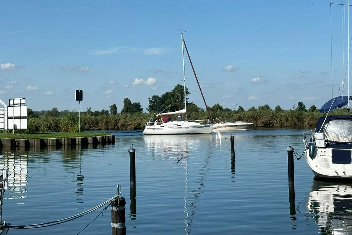 Direkt im Yachthafen: Fahrrad-, Boots- und E-Scooter-Verleih, wunderschön gelegene Grillplätze, Volleyballfeld, Basketballkorb und ein kleines Rasenfussballfeld, Aussenschachspielfläche, Frühstücksrestaurant im Hafengebäude eine Minute entfernt, Brötchenverkauf eine Minute entfernt, Angelmöglichkeit in der Uecker, separierter Spielplatz, Fahrradunterstellmöglichkeit