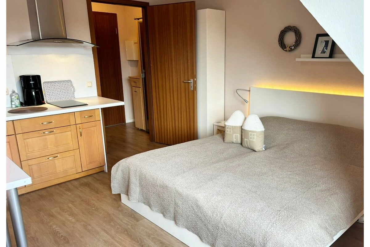 Das Apartment verfügt über einen Balkon, ein Wohn- und Schlafzimmer mit Küchenzeile und ein Bad mit Dusche und WC. Belegung 2+1 (bis 6 Jahre im Bett der Eltern). Die Küche ist mit zwei Kochfeldern und einer Mikrowelle ausgestattet. Das Apartment verfügt über Kabel-TV, Radio, Fön, Fliegengitter u.v.m. Ein Pkw-Stellplatz ist für Sie kostenfrei.