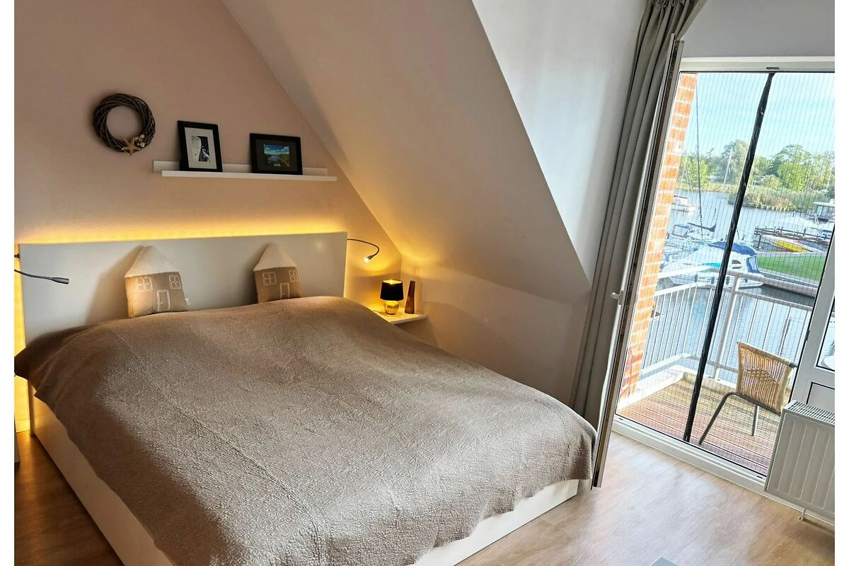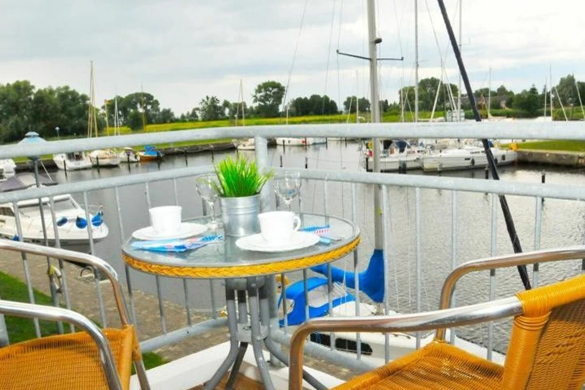 Geniessen Sie vom Balkon aus einen einzigartigen Blick über den Hafen und die Hafeneinfahrt, die Uecker und in der Ferne das Stettiner Haff und die weite Küstenlandschaft - mit maritimer Stimmung von früh bis spät, perfekt für den ersten Kaffee am Morgen oder ein Glas Wein bei Sonnenuntergang. Das Apartment verfügt über einen Balkon, ein Wohn- und Schlafzimmer mit Küchenzeile und ein Bad mit Dusche und WC. Belegung 2+1 (bis 6 Jahre im Bett der Eltern). Die Küche ist mit zwei Kochfeldern und einer Mikrowelle ausgestattet. Das Apartment verfügt über Kabel-TV, Radio, Fön, Fliegengitter u.v.m. Ein Pkw-Stellplatz ist für Sie kostenfrei. Direkt im Yachthafen: Fahrrad-, Boots- und E-Scooter-Verleih, wunderschön gelegene Grillplätze, Volleyballfeld, Basketballkorb und ein kleines Rasenfussballfeld, Aussenschachspielfläche, Frühstücksrestaurant im Hafengebäude eine Minute entfernt, Brötchenverkauf eine Minute entfernt, Angelmöglichkeit in der Uecker, separierter Spielplatz, Fahrradunterstellmöglichkeit