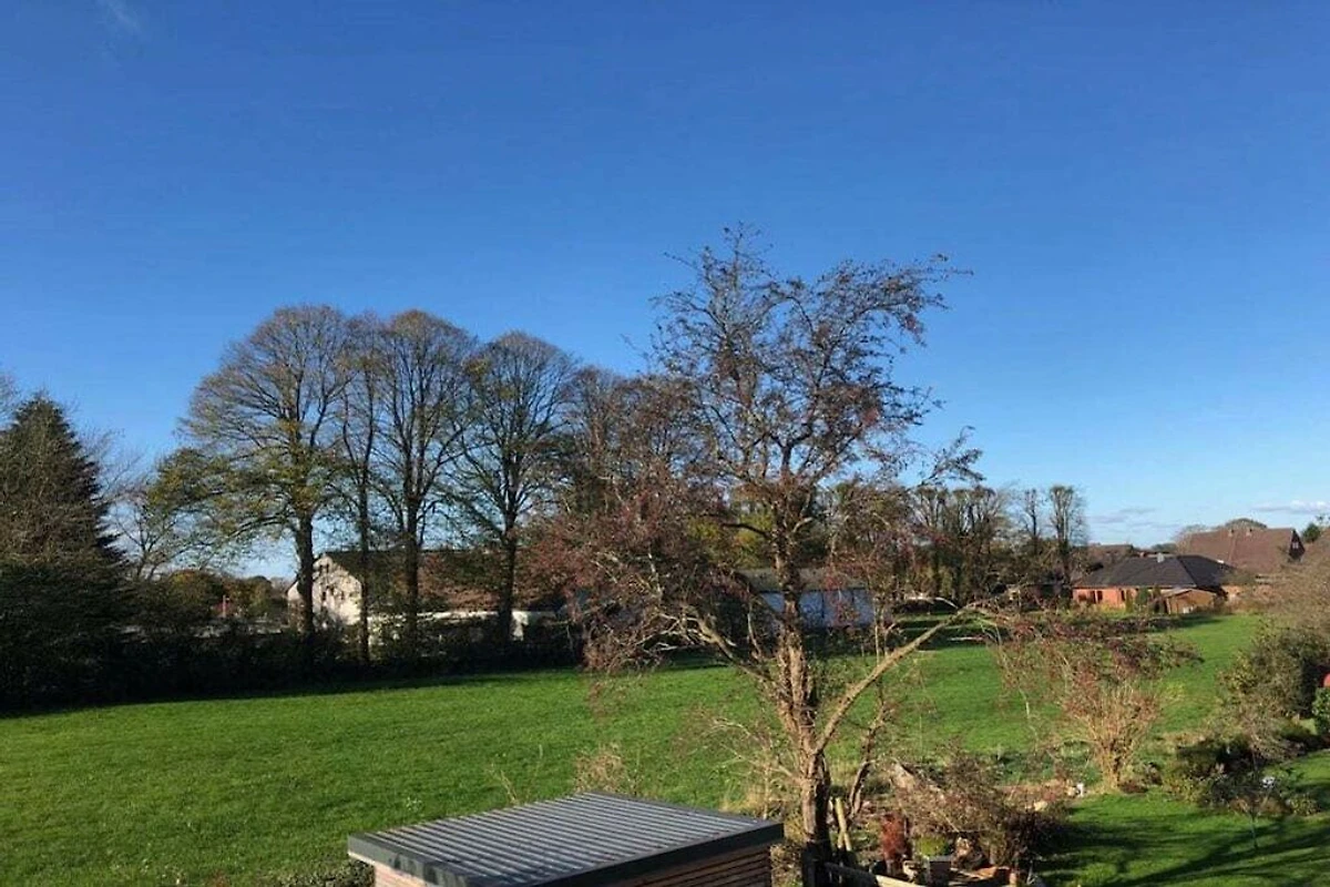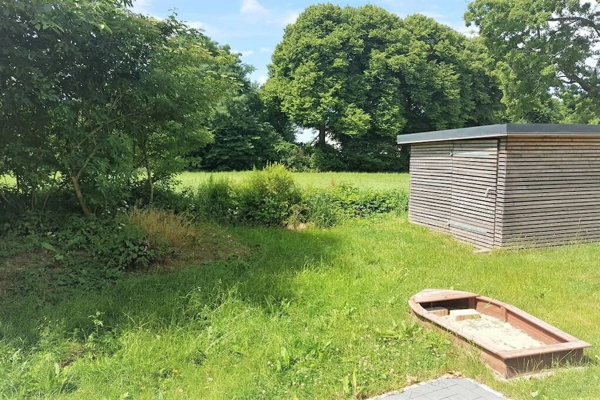 Im Garten hat man einen unverbauten Blick auf Felder und Natur.
