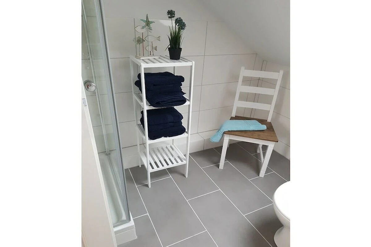 In der 1. Etage: (Wohn/Esszimmer(, , , , , Kochnische, Doppelschlafcouch, TV, Esstisch, DVD-Spieler, Kochplatte, Wasserkocher, Toaster, Kaffeemaschine, Backofen, Spülmaschine, Kühlschrank, Tiefkühlschrank, Babybett, Hochstuhl), Schlafzimmer(, , , Doppelbett, TV, Babybett), Badezimmer(, Toilette, Dusche, Waschbecken))