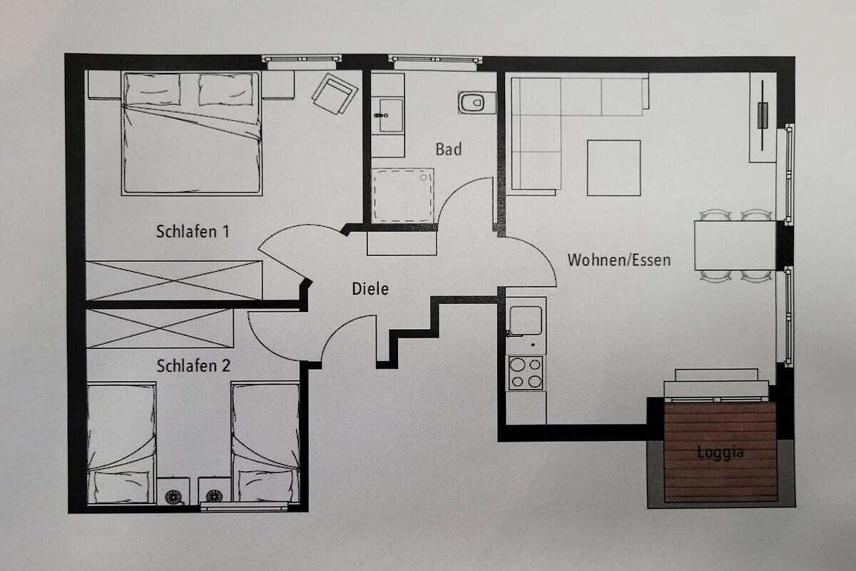 Die Wohnung bietet Platz für 2-3 Personen (Nichtraucher). Eine 4. Person kann angefragt werden.