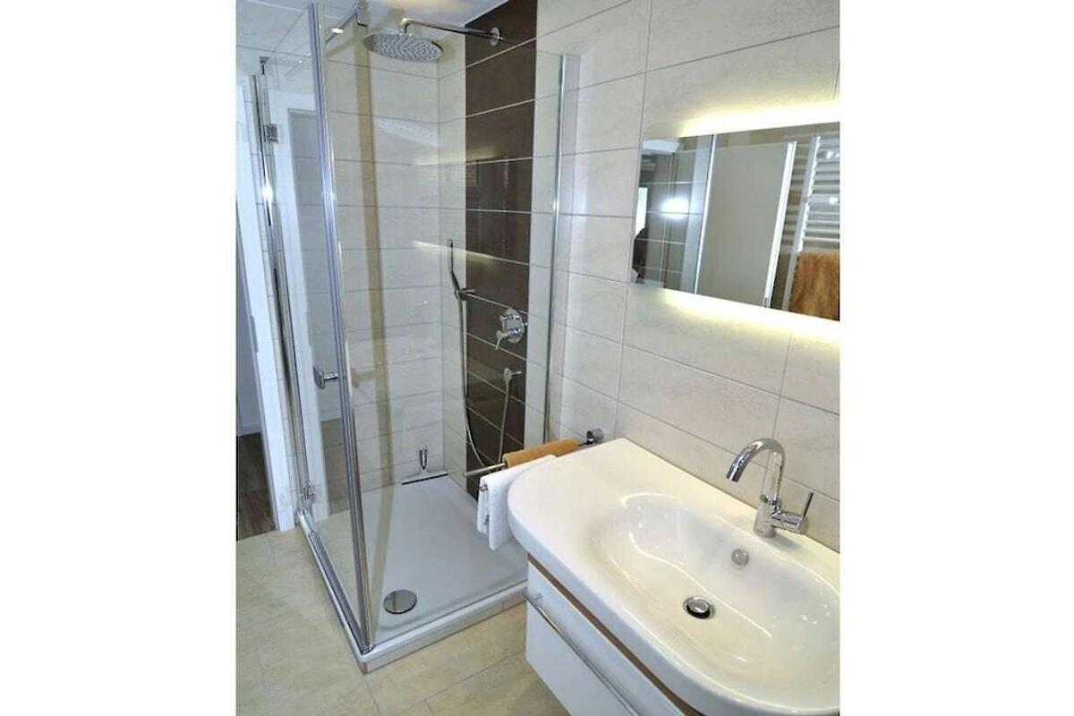 Die hochwertige 3-Raum-Wohnung (ca. 50 qm) in der 1. Etage bietet zwei separate Schlafzimmer (1x Flachbild-TV), Wohnzimmer (Flachbild-TV) mit voll ausgestatteter Küchenzeile (Mikrowelle, Spülmaschine, Kaffeemaschine, Wasserkocher, 4-Platten-Ceranherd), Badezimmer und Flur.