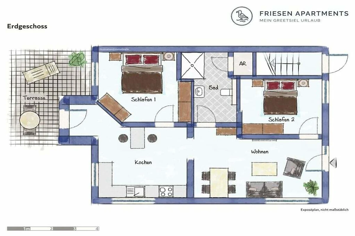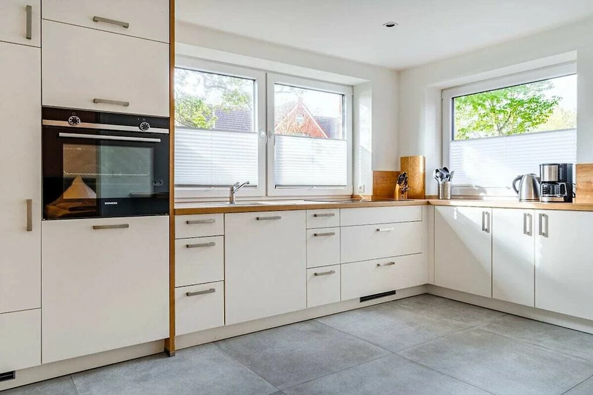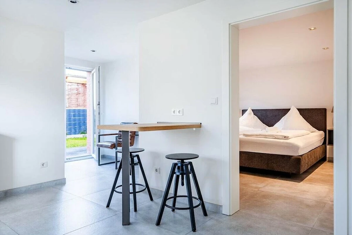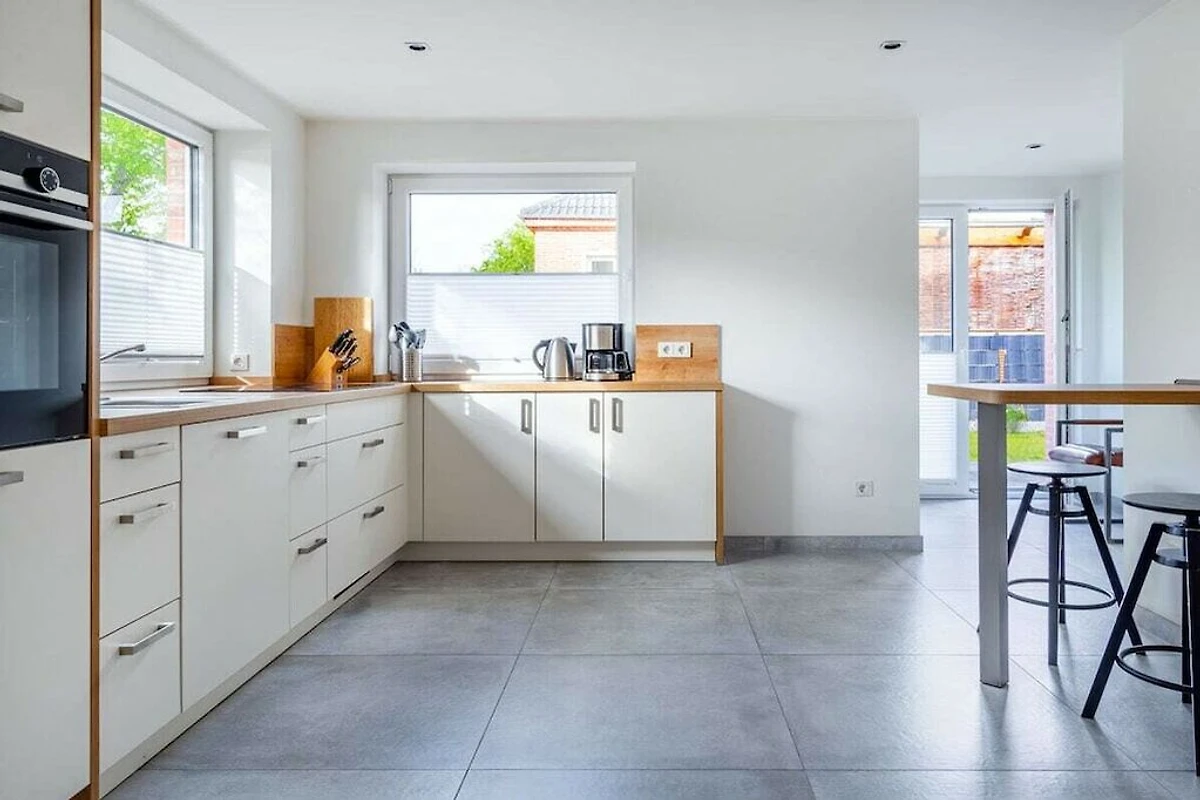 Verbringen Sie Ihren Greetsiel Aufenthalt in unserer kürzlich sanierten Erdgeschoss Wohnung "Die Zimmerei 1". Auf etwa 70qm finden Sie hier einen hellen und geräumigen Wohn-Ess-Bereich mit einer voll ausgestatteten Küche, ausreichend Sitzmöglichkeiten, zwei Schlafzimmer mit Boxspringbetten sowie ein Badezimmer mit ebenerdiger Dusche. Auf der Terrasse lässt es sich nach ereignisreichen Tagen entspannen und die frische Luft genießen. Auch Ihr Vierbeiner wird sich hier wohlfühlen. Durch die ausgezeichnete zentrale und dennoch ruhige Lage erreichen Sie alles gut zu Fuß. Selbstverständlich steht Ihnen ein eigener Parkplatz am Haus zur Verfügung. Sollten Sie mit einem E-Auto anreisen, verfügt das Objekt auch über eine Ladesäule, die Sie hinzu buchen können.
