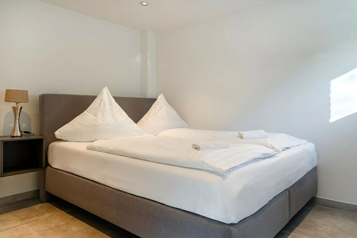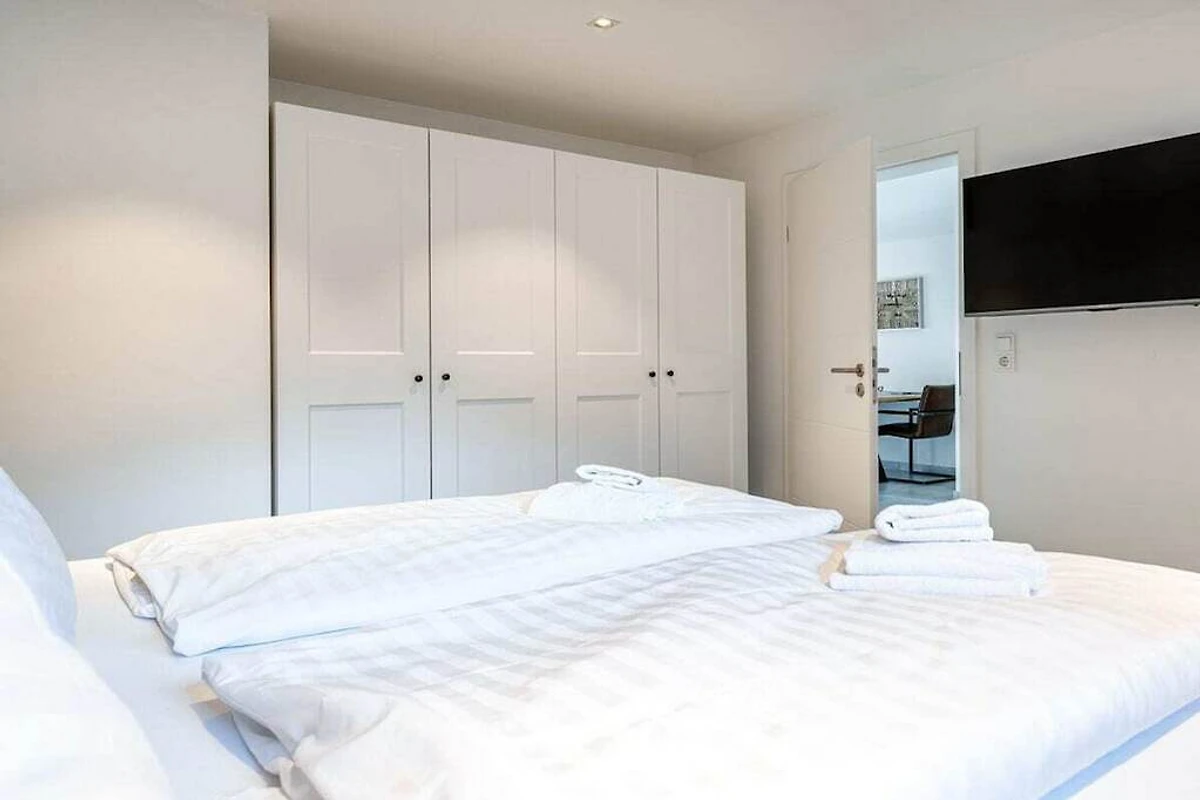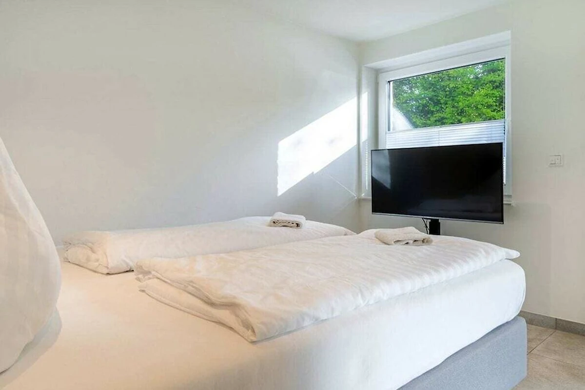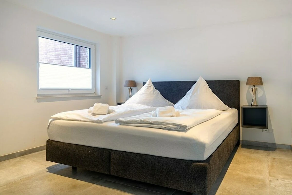 , , , Wohnzimmer(, TV, Sitzecke, Radio), Küche(, Kochnische, Esstisch, Kochplatte, Wasserkocher, Kochherd, Kaffeemaschine, Backofen, Mikrowelle, Spülmaschine, Kühlschrank, Tiefkühlschrank), Schlafzimmer(, Doppelbett, TV), Schlafzimmer(, Doppelbett, TV), Badezimmer(, Toilette, Dusche, Waschbecken, Heizung), Internet, Internet, Waschmaschine, Garten(Gartenmöbel), Parkplatz