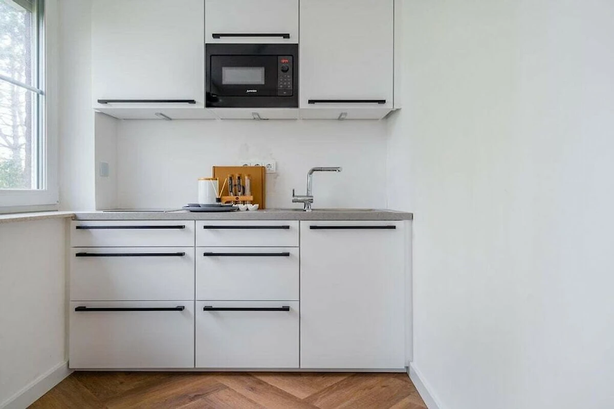 Unser Design-Apartment "Chilly-Breeze 2" finden Sie in ruhiger Lage unweit des Deichs am Ortsrand von Greetsiel. Auf etwa 35qm verfügt diese Wohnung über einen lichtdurchfluteten und offen gestalteten Wohn-Schlafraum mit voll ausgestatteter kleinen Küchenzeile, einem Esstisch, einem bequemem Boxspringbett, sowie einem Tageslichtbad mit ebenerdiger Dusche. Die Wohnung wurde besonders hochwertig und mit viel Liebe zum Detail ausgestattet, sodass Sie hier das ein oder andere Designobjekt finden und sich wohl fühlen können. Genießen Sie die Sonnenstunden beispielsweise in dem Strandkorb in dem natürlichen, parkähnlichen Gemeinschaftsgarten, der auch eine kleine Sitzecke bietet. Bei "Schietwetter" bietet sich eine Trainingseinheit im kleinen gemeinschaftlichen Fitnessraum an. Neben einem PKW-Parkplatz stehen natürlich Abstellmöglichkeiten für Fahrräder zur Verfügung.